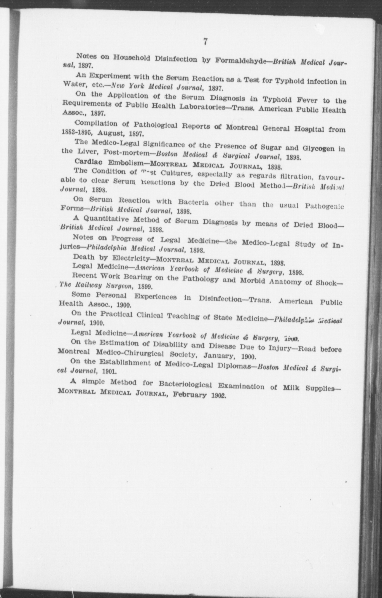 Partial contents: Obituary: Professor Wyatt Galt Johnston -- A biological analysis of the Montreal water supply during the period from November, 1890, to November 1891 -- Pathological reports: Montreal General Hospital, numbers 3, reference index of post-mortems from 1883 to 1895.