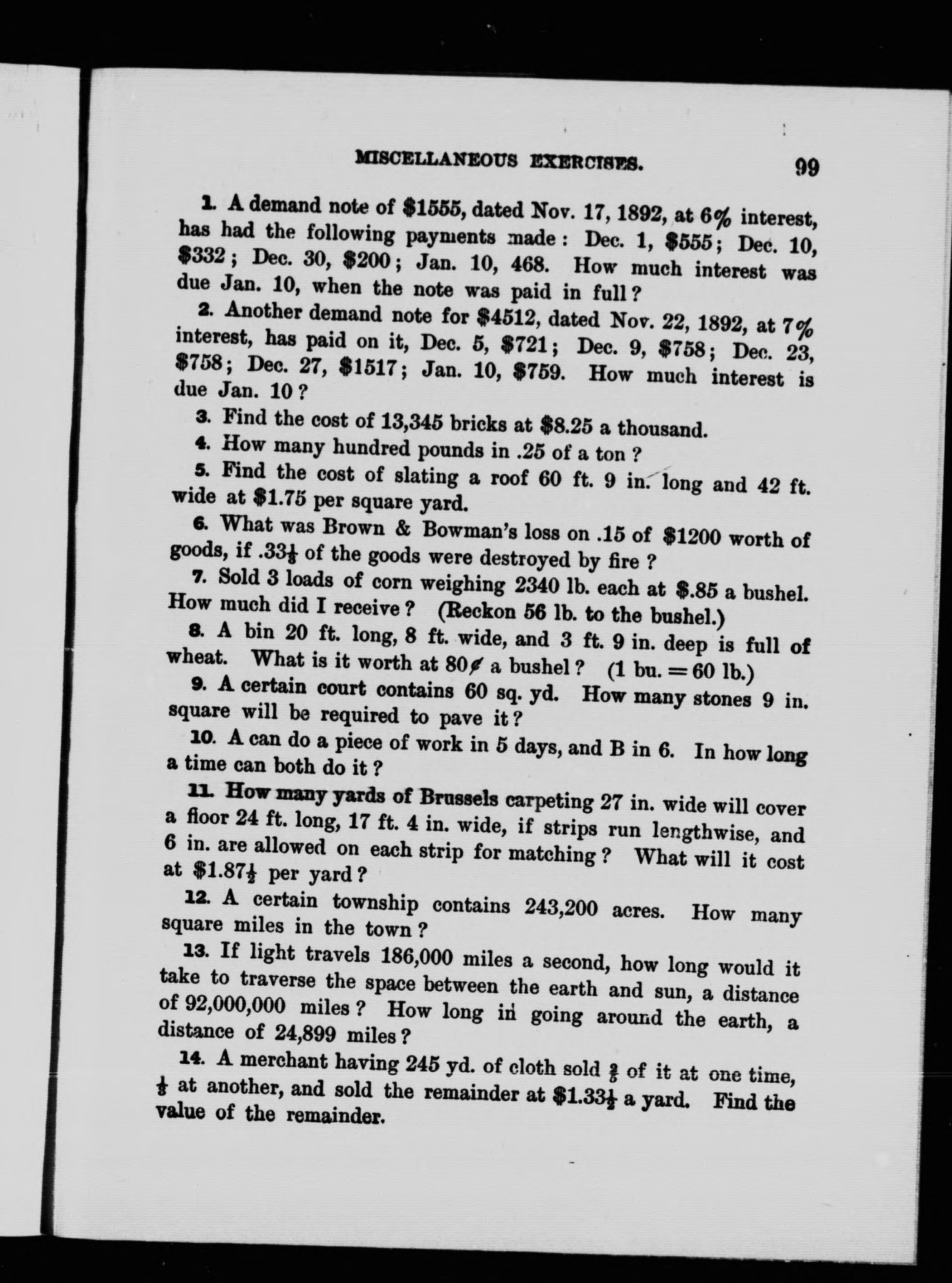 "Book Number Seven. Profit and Loss, Commission, Insurance, Taxes, Duties, Interest, Banking, Stocks and Bonds, Exchange, Business Accounts, Geometrical Exercises, Ratio and Proportion."