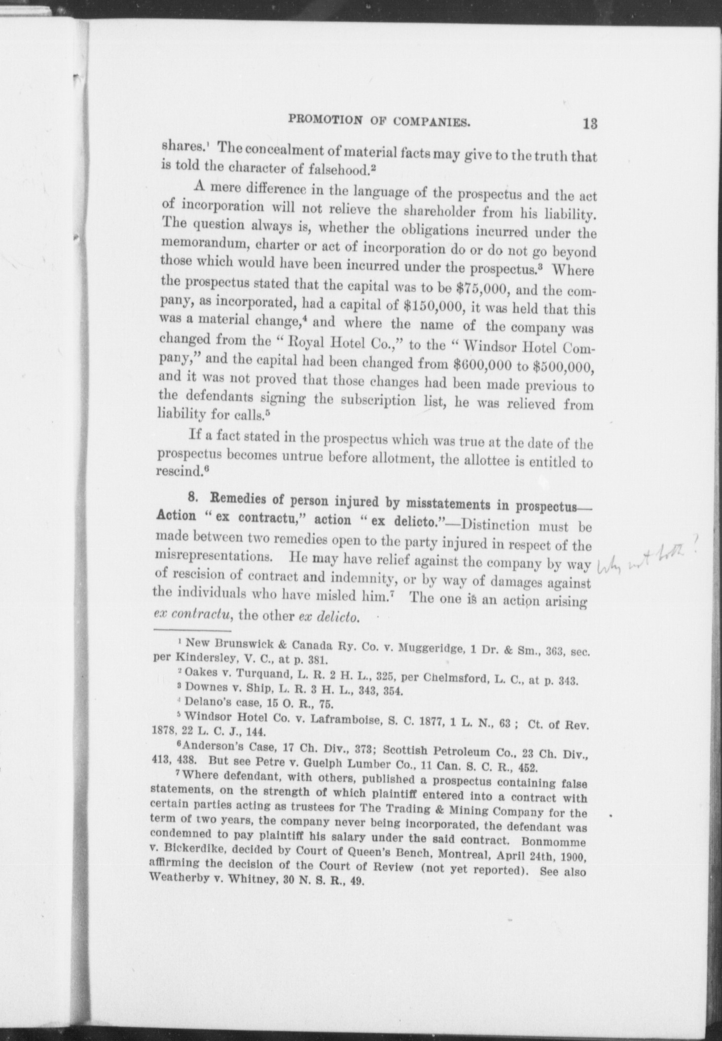 A treatise on Canadian company law : containing a commentary on the Companies Act of the Dominion, with incidental reference to the law of the various provinces, with full notes of the jurisprudences and appendices of the statutes and useful forms