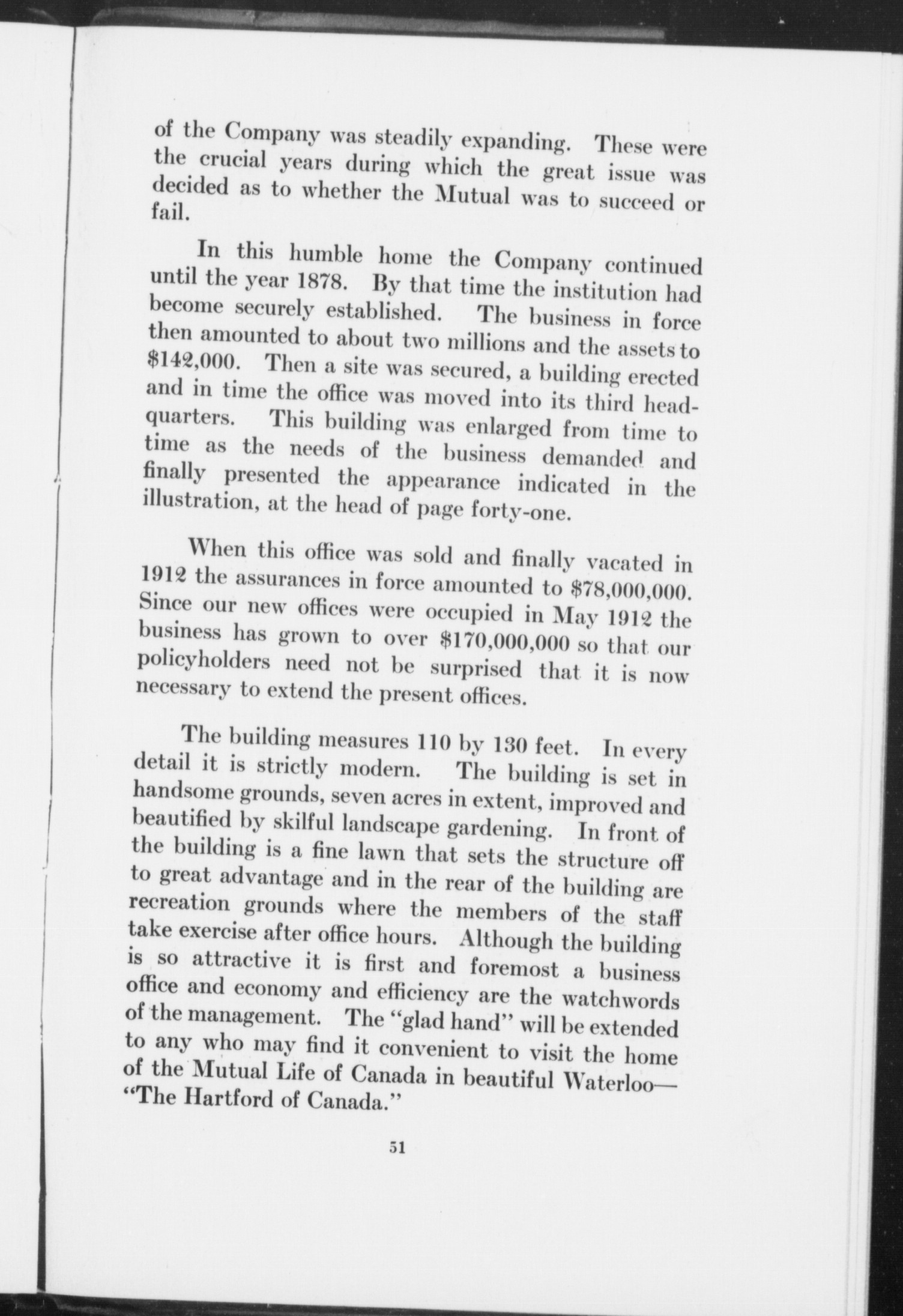 - The Story of the Mutual Life Assurance Company of Canada, 1870- 1920.
