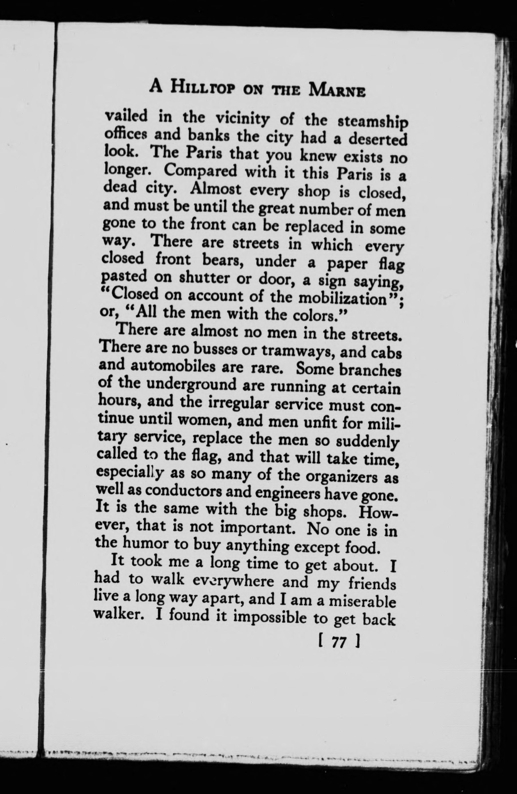 "In June, 1914, the author of this book, a well known Boston woman, bought a house in the Marne valley ... A few weeks later she found herself in the very centre of the battle of Marne ... This book is made up of genuine letters written from day to day to friends ..."--cover page.