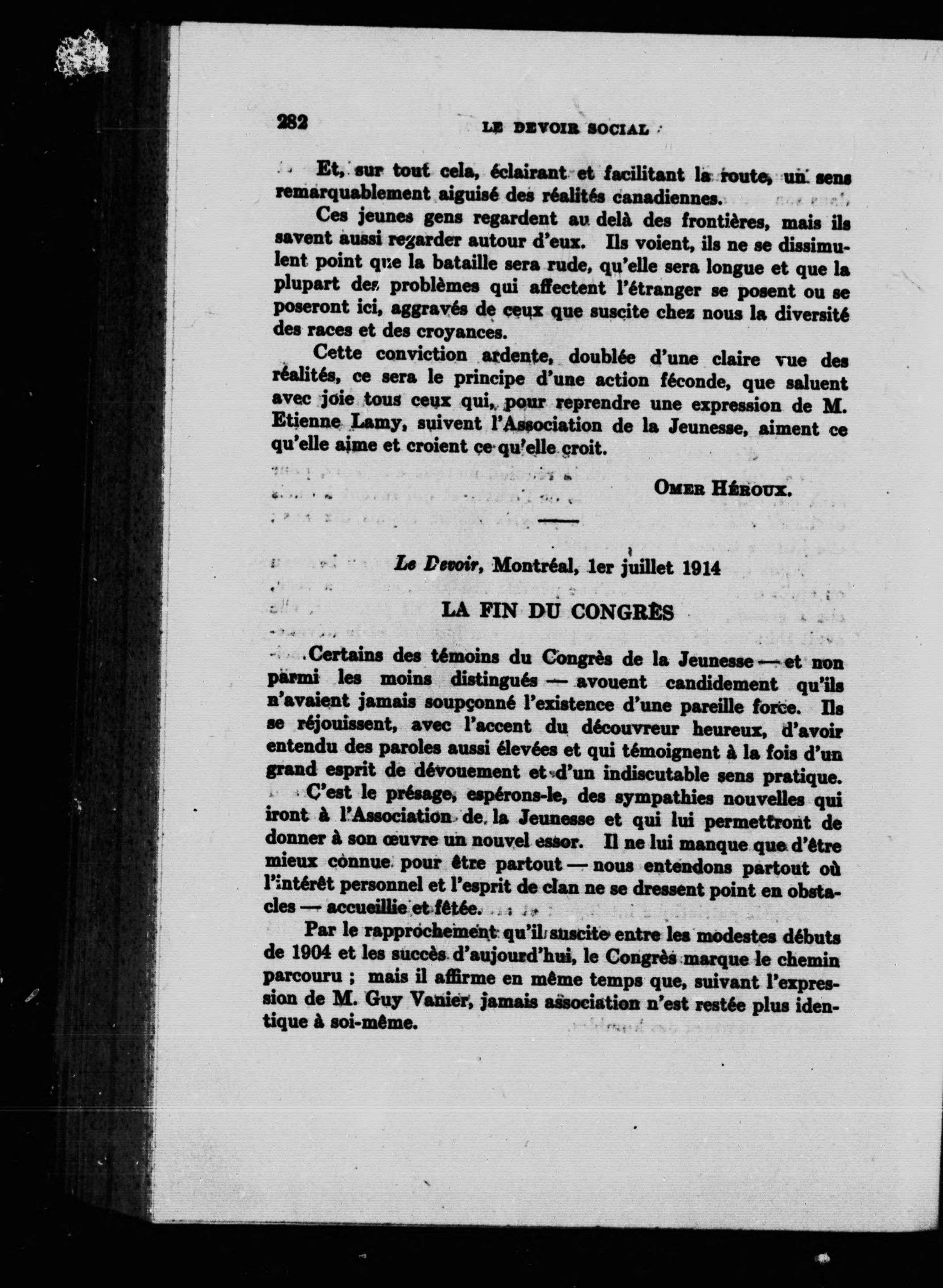 Le devoir social au Canada français :