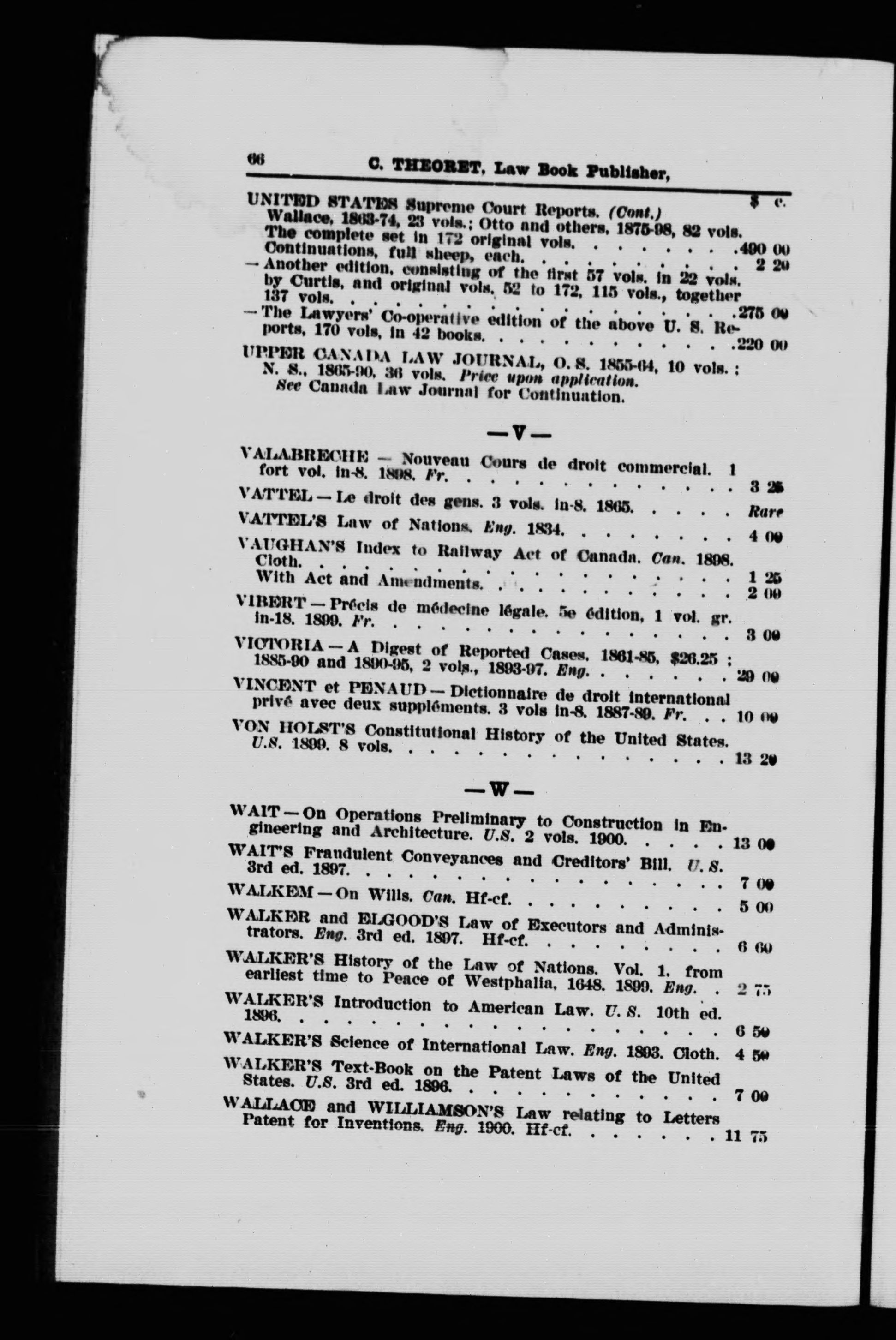 Catalogue of law books published in Canada, Great Britain, France and United States : classified alphabetially under the name of authors, followed with an alphabetical index of subjects - Adresse bibliographique