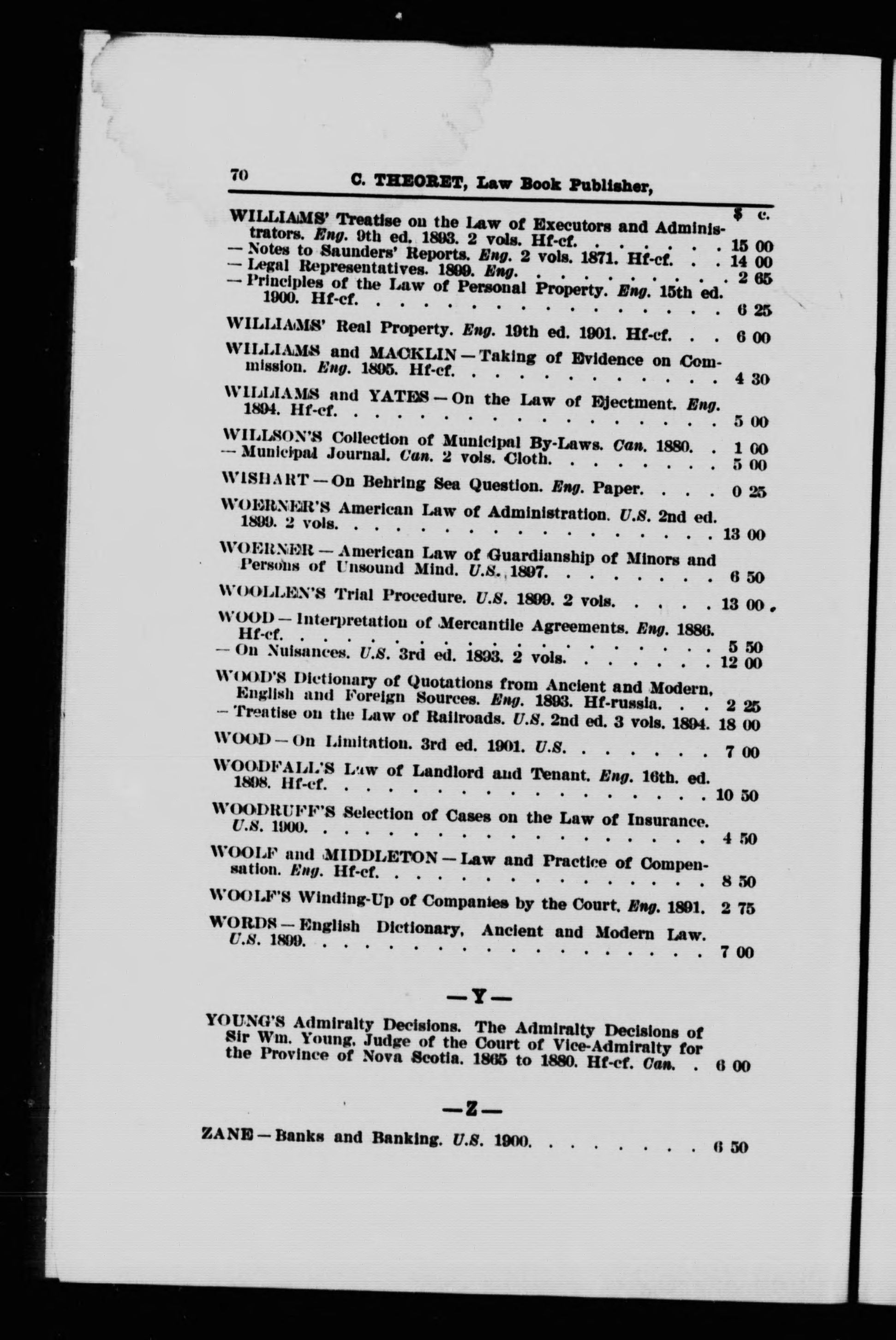 Catalogue of law books published in Canada, Great Britain, France and United States : classified alphabetially under the name of authors, followed with an alphabetical index of subjects - Adresse bibliographique