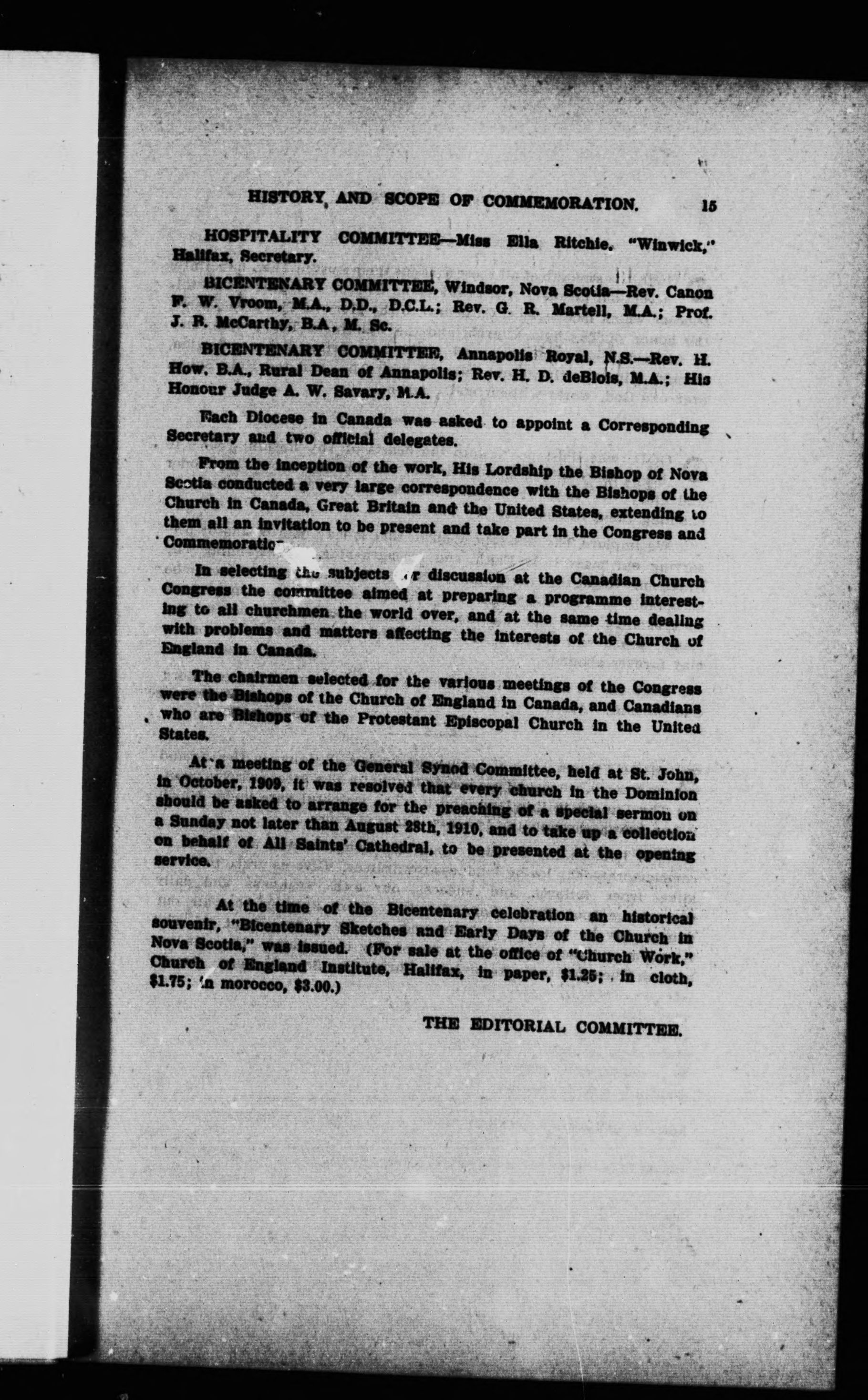 - Church of England in Canada. Bicentenary Congress (1910 : Halifax, N.S.)