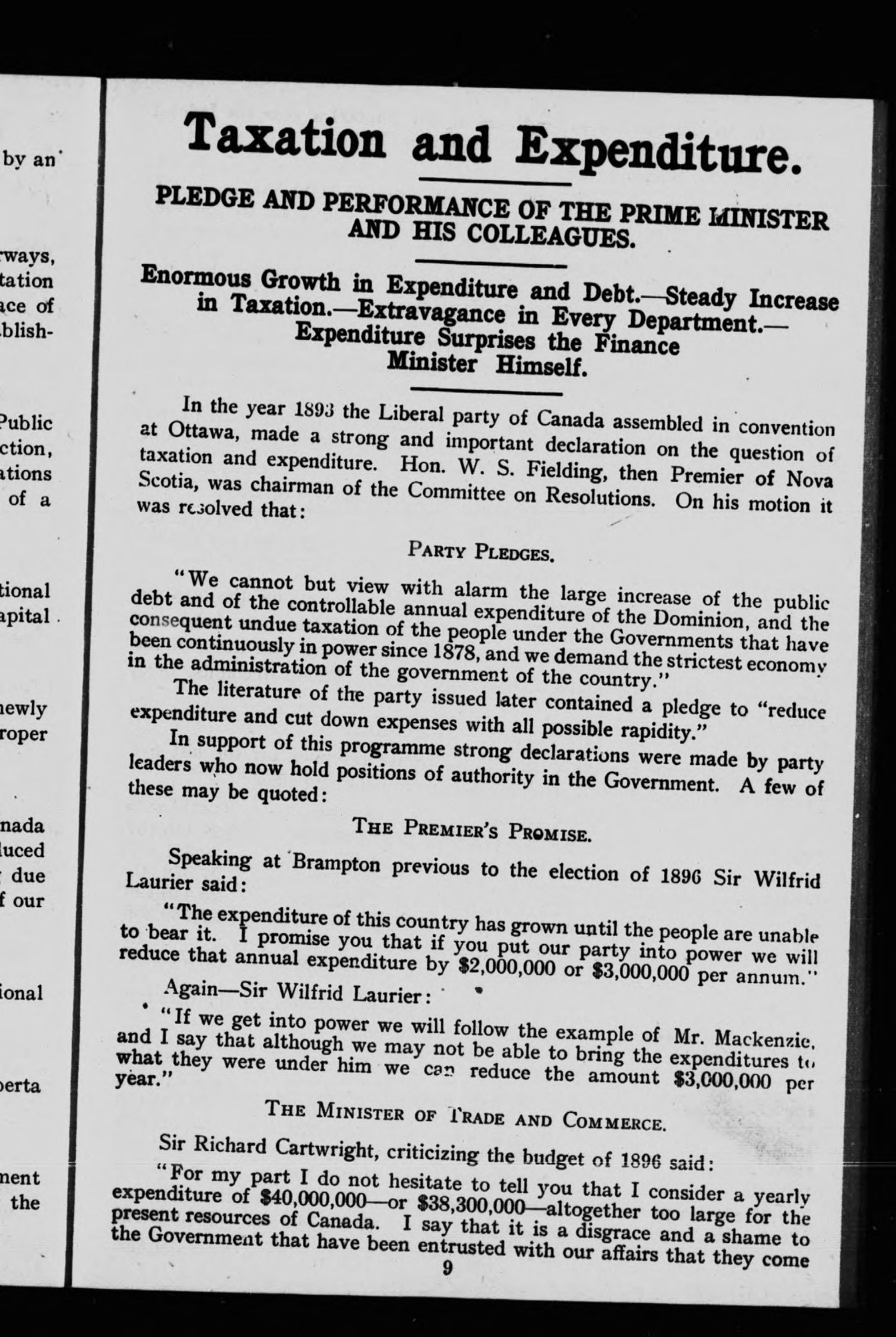 '"The Government is responsible for every thing which takes place in any department."--Sir Wilfrid Laurier.'