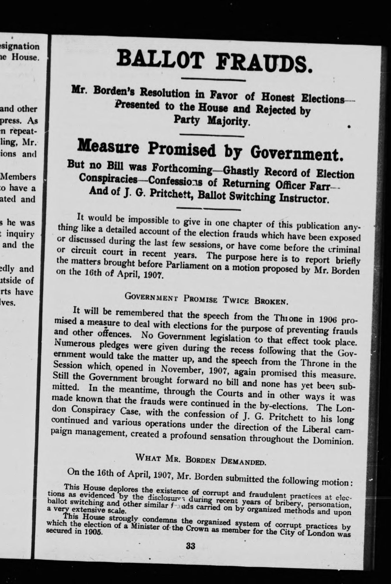 A session's disclosures : second series : some transactions of the Laurier administration exposed in the session of 1907.