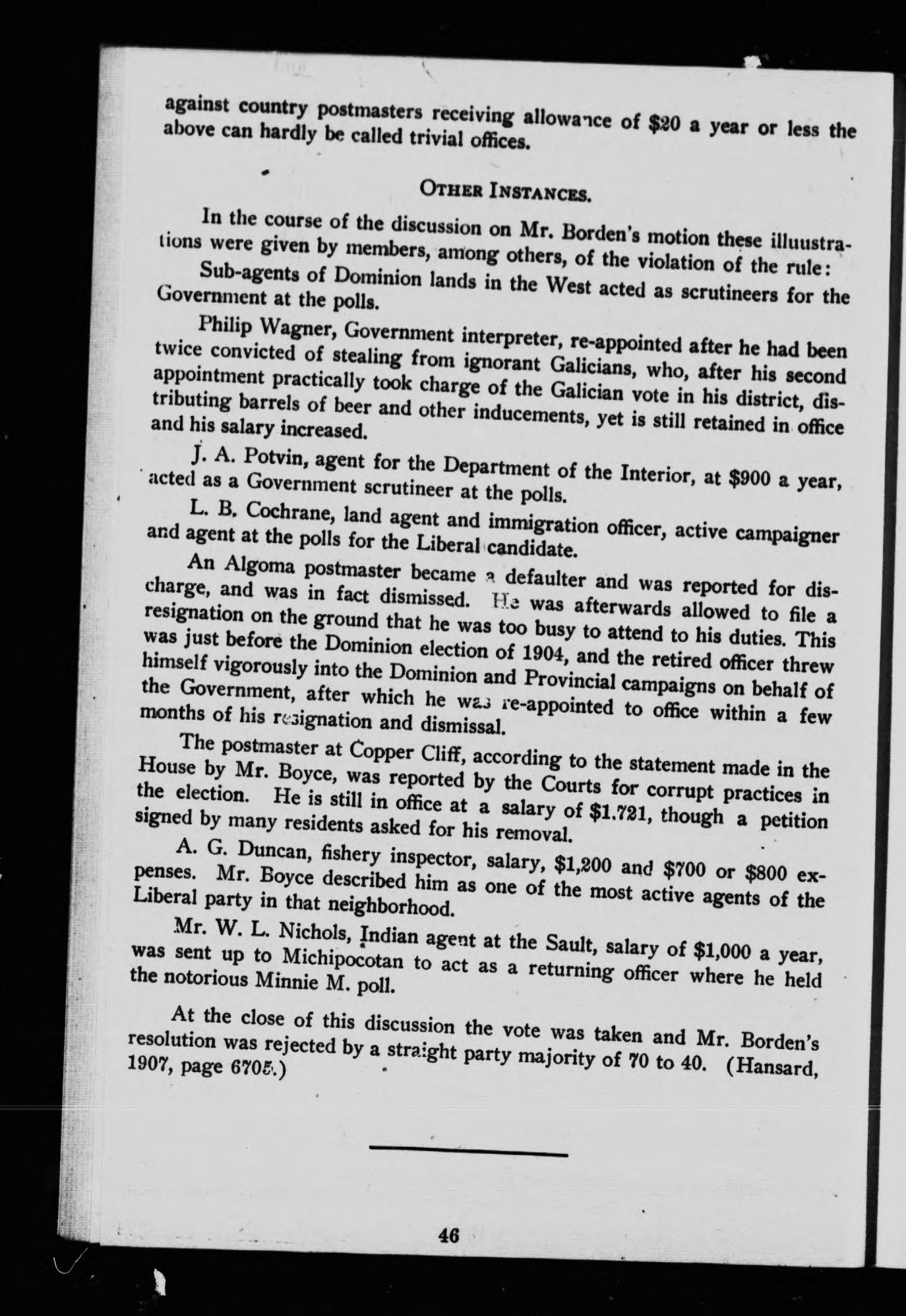 '"The Government is responsible for every thing which takes place in any department."--Sir Wilfrid Laurier.'