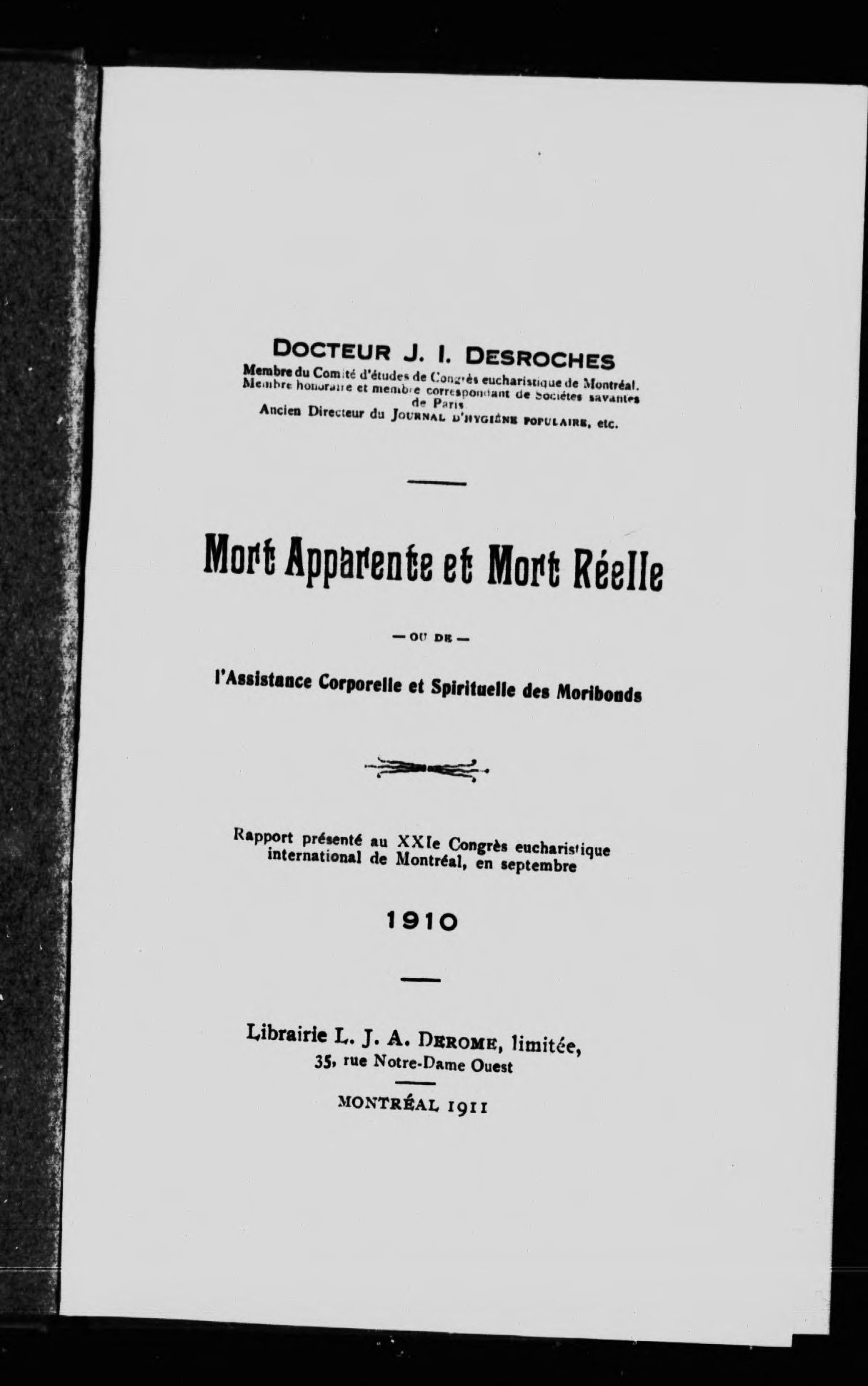 Mort apparente et mort réelle, ou, De l'assistance corporelle et spirituelle des moribonds : rapport présenté au XXIe Congrès eucharistique international de Montréal, en septembre 1910