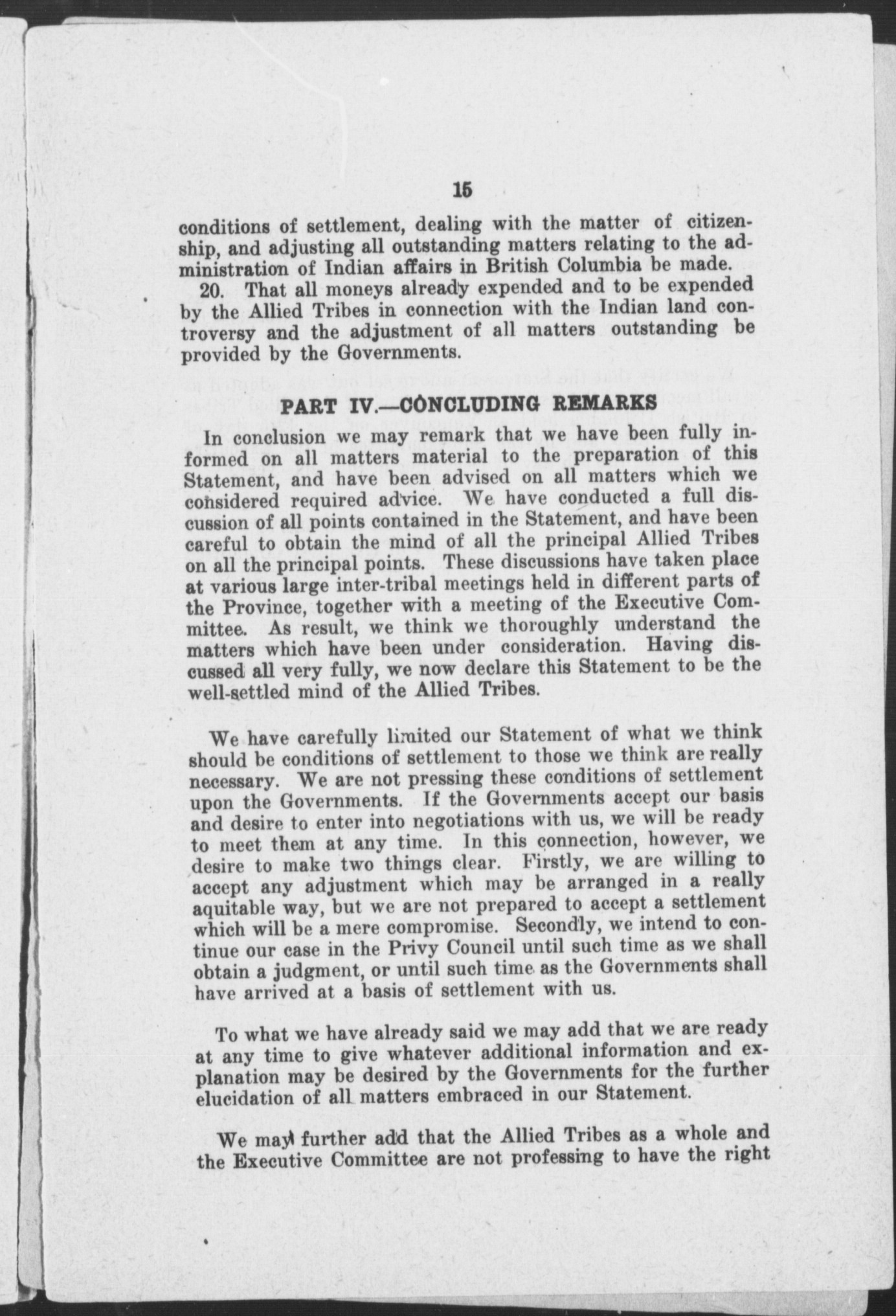 Statement of the Allied Indian Tribes of British Columbia for the Government of British Columbia. - Adresse bibliographique