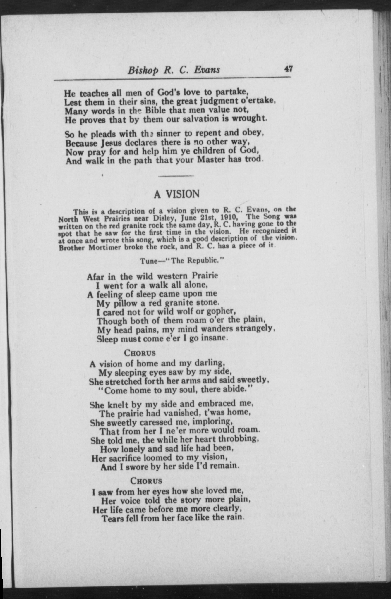 The songs, poems, notes and correspondence of Bishop R.C. Evans and some addresses presented to him, from many parts of the world.