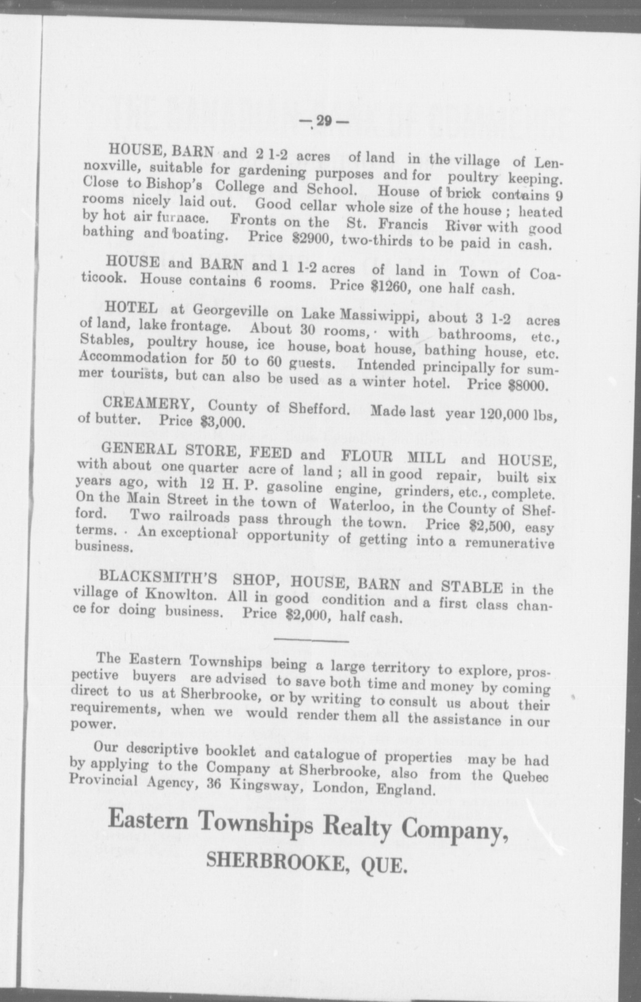 Sherbrooke, Que. : Eastern Townships Realty Company Limited, [1913?]