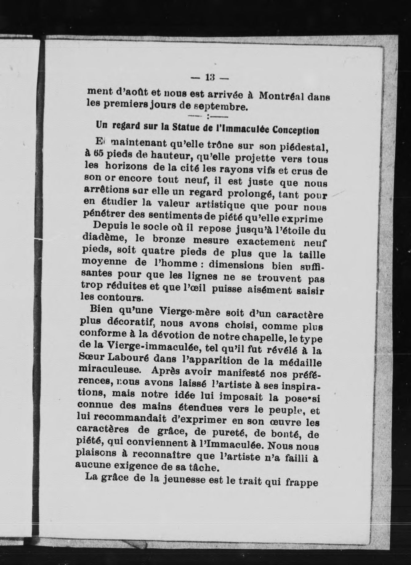 - Notice sur la Statue de Marie-Immacullée : érigée le 11 septembre, 1904 sur le faîte de l'Église Notre-Dame de Lourdes, à Montréal.