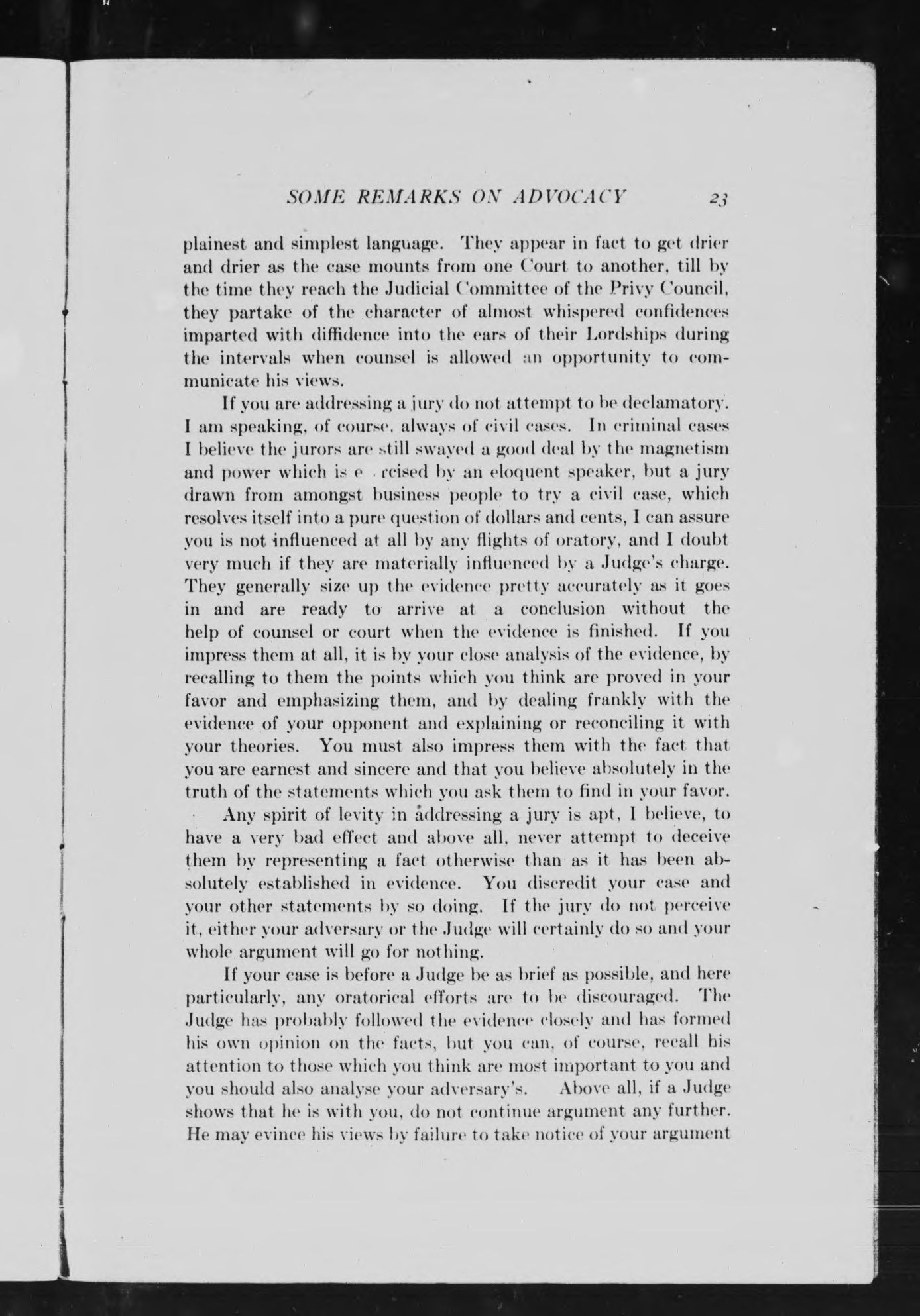 Some remarks on advocacy in civil cases :