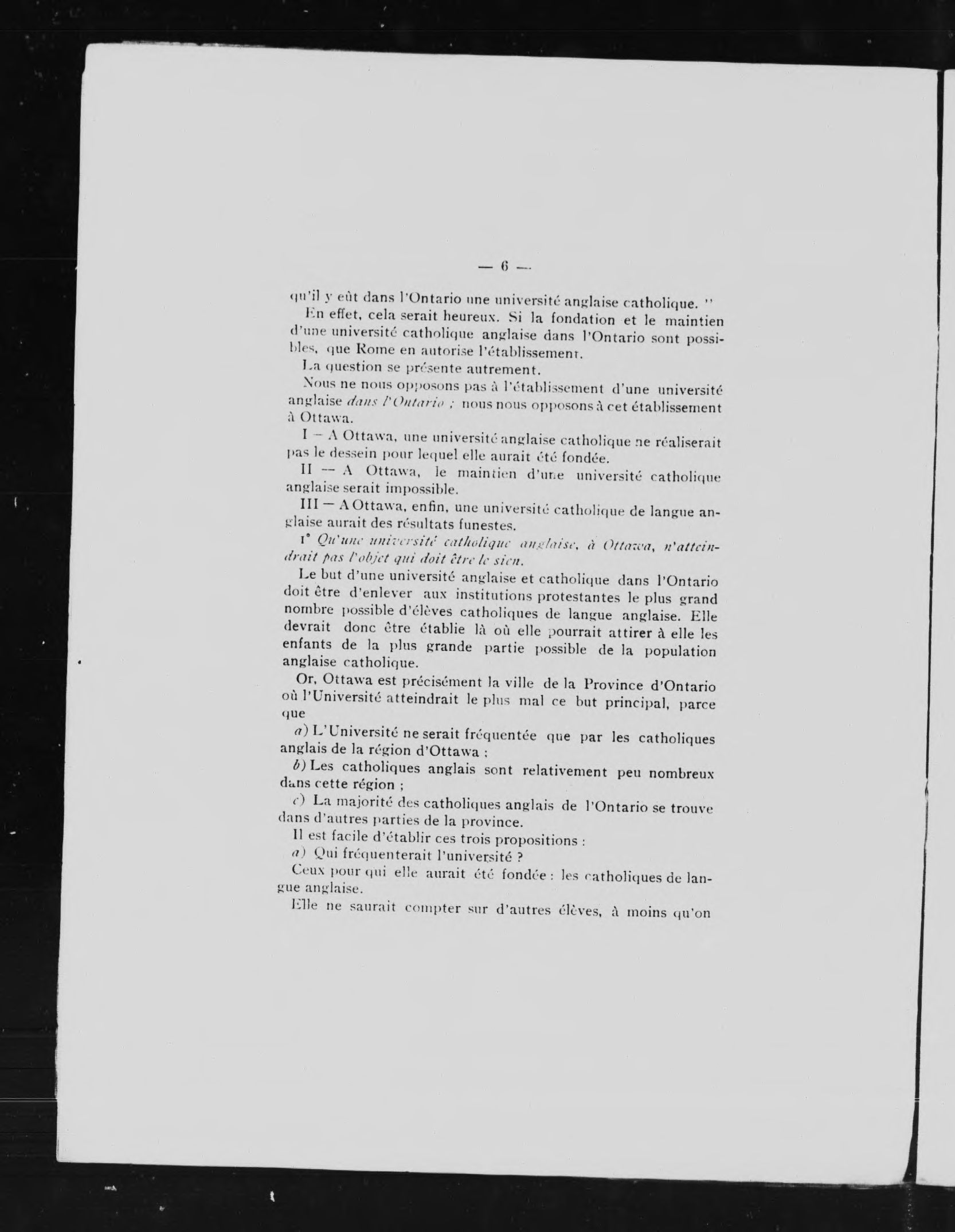 Mémoire sur le projet de transformer l'Université d'Ottawa en université de langue anglaise exclusivement.