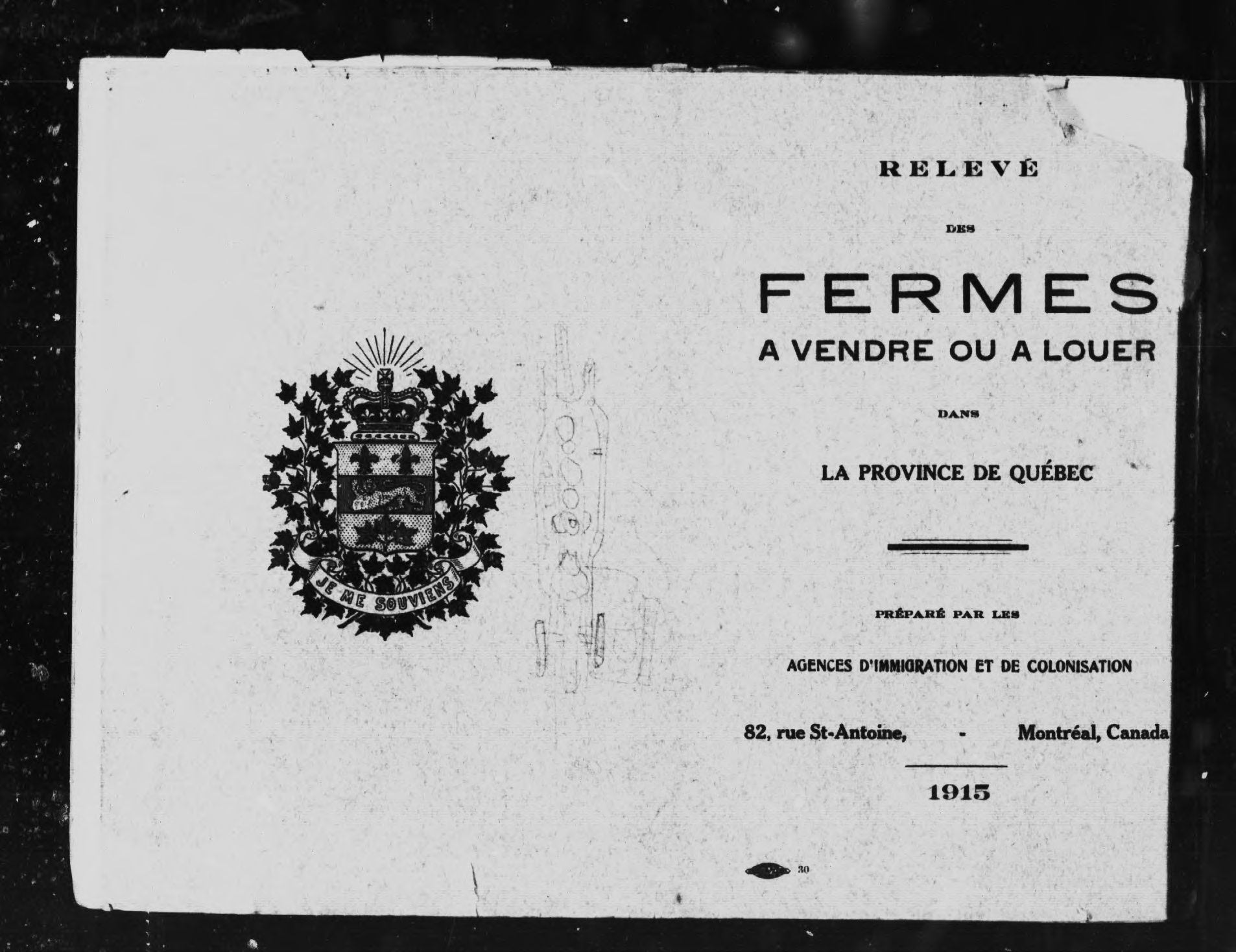 Relevé des fermes à vendre ou à louer dans la province de Québec - Published