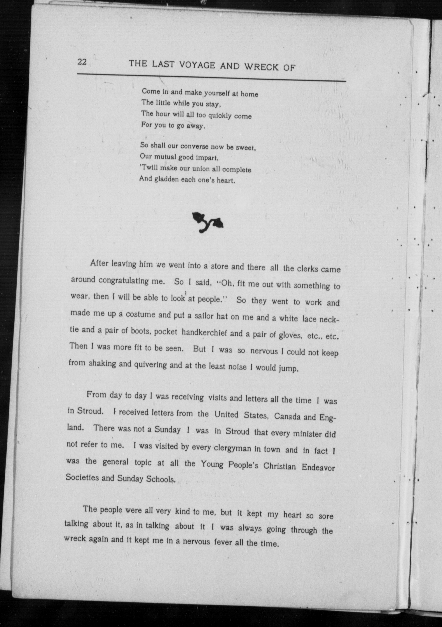 "A Thrilling and interesting narrative of her own personal experience, she being one of the rescued passengers"