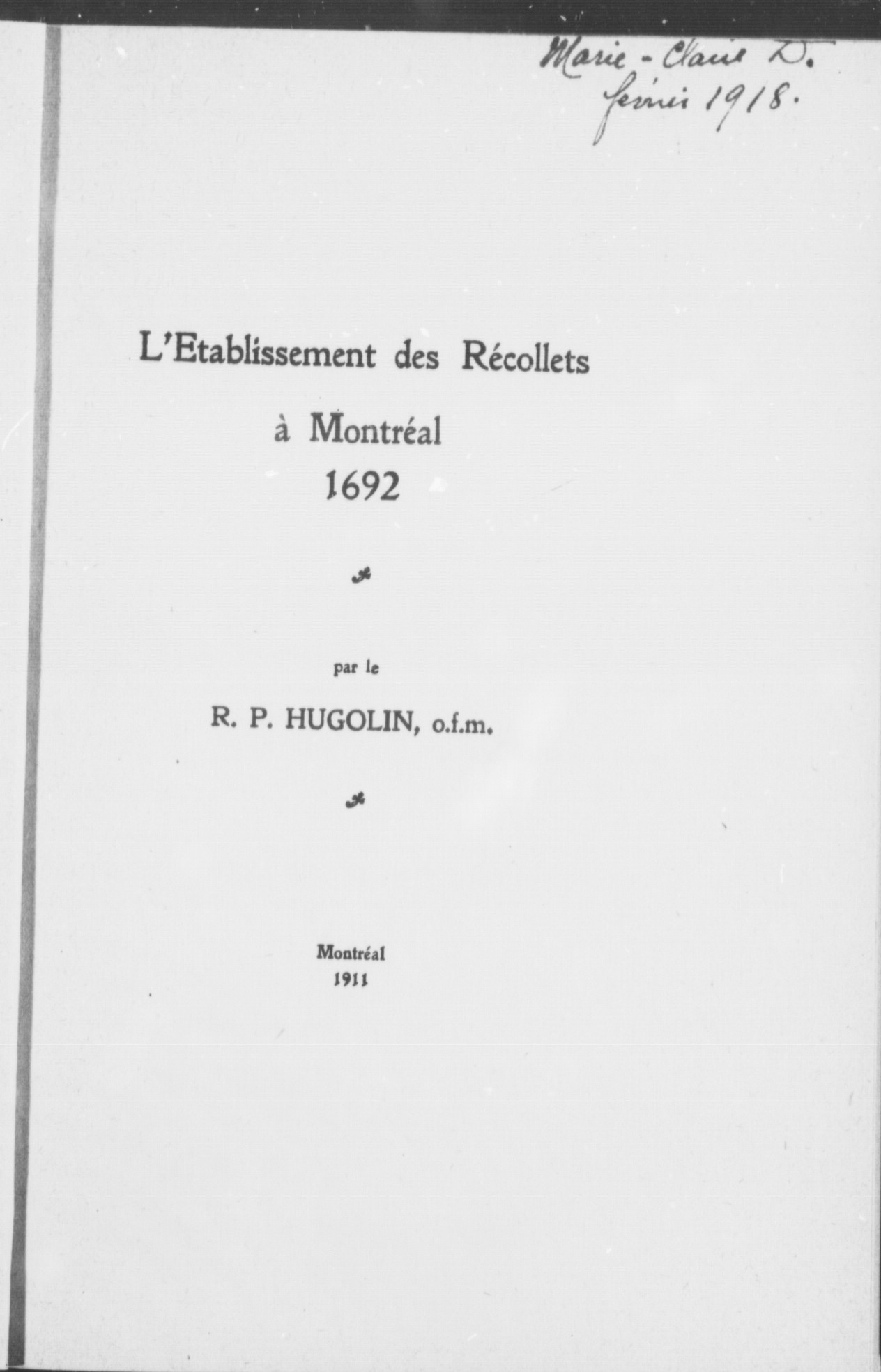 Franciscan Recollects -- Quebec (Province) -- Montréal -- History.