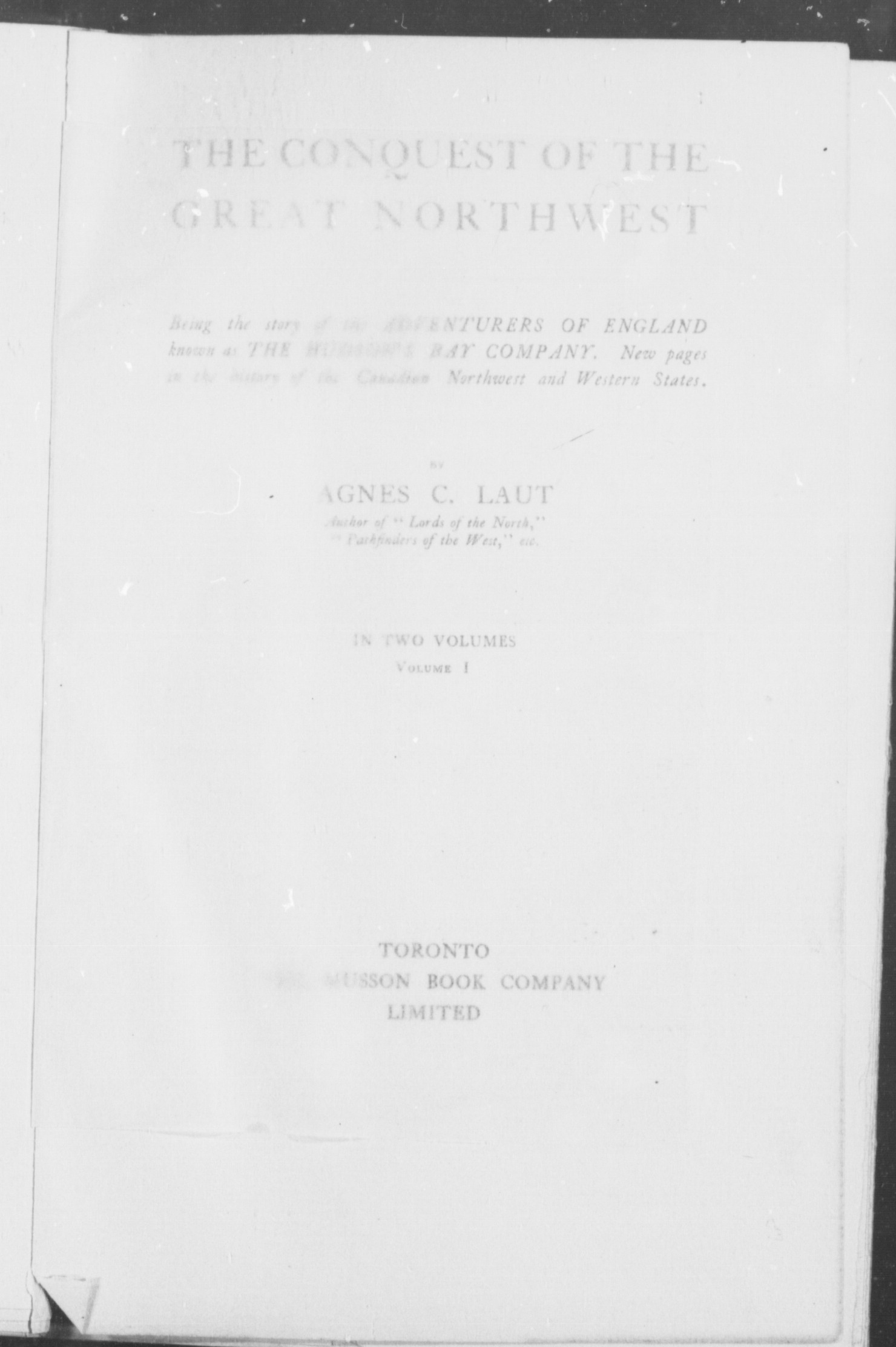 The conquest of the great Northwest : being the story of the adventurers of England known as the Hudson's Bay Company, new pages in the history of the Canadian Northwest and Western States