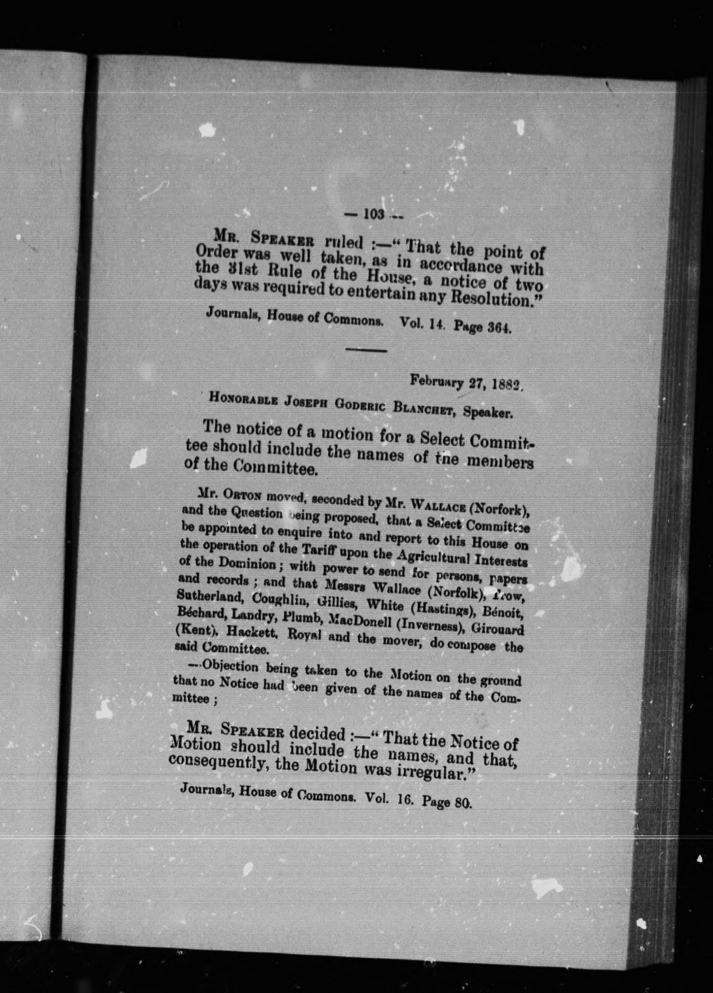 Decisions of the speakers of the House of Commons of Canada, 1867-1900