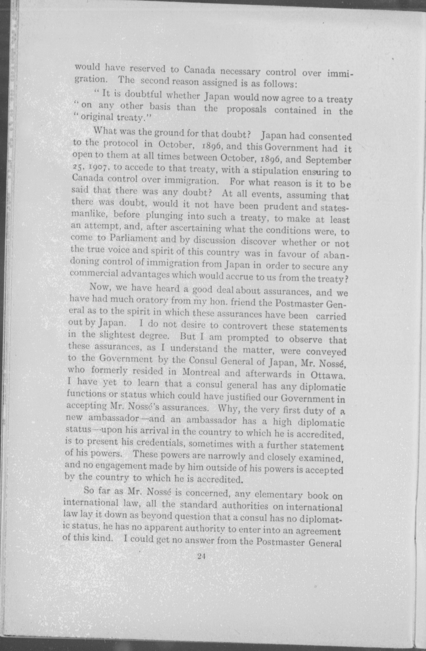 Pages 3-9: Speech (in part) delivered by Mr. R.L. Borden at Vancouver, 24th September, 1907.