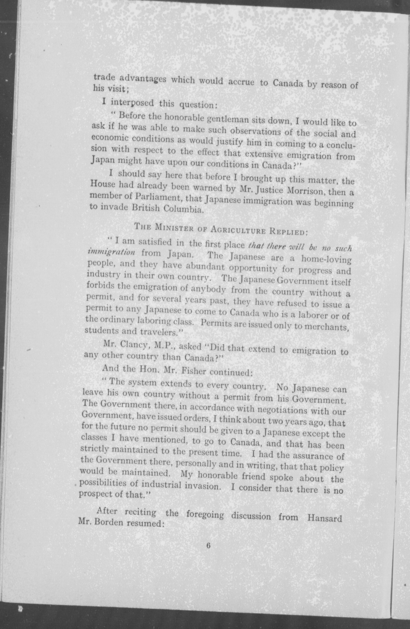 Pages 3-9: Speech (in part) delivered by Mr. R.L. Borden at Vancouver, 24th September, 1907.