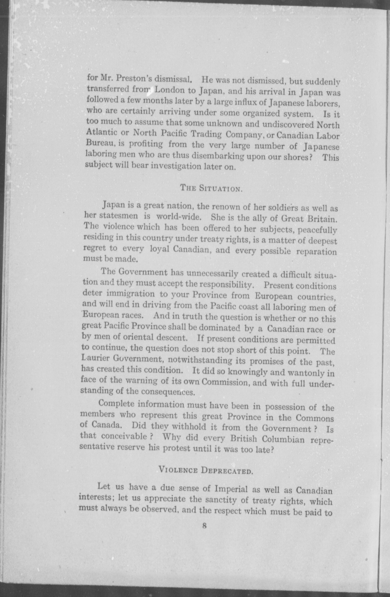 Pages 3-9: Speech (in part) delivered by Mr. R.L. Borden at Vancouver, 24th September, 1907.