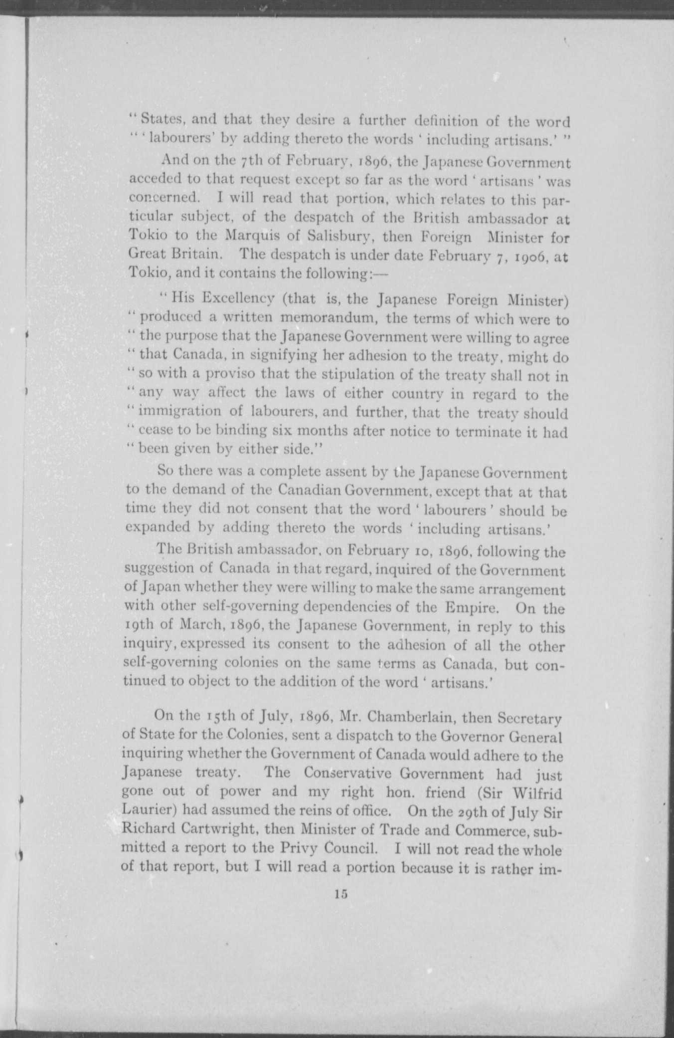 Pages 3-9: Speech (in part) delivered by Mr. R.L. Borden at Vancouver, 24th September, 1907.