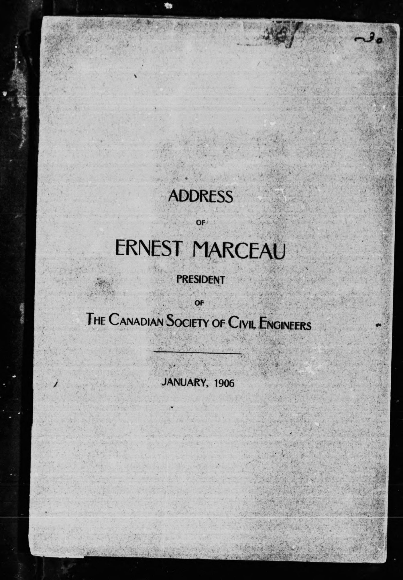 Cover title: Address of Ernest Marceau, President of the Canadian Society of Civil Engineers, January, 1906.