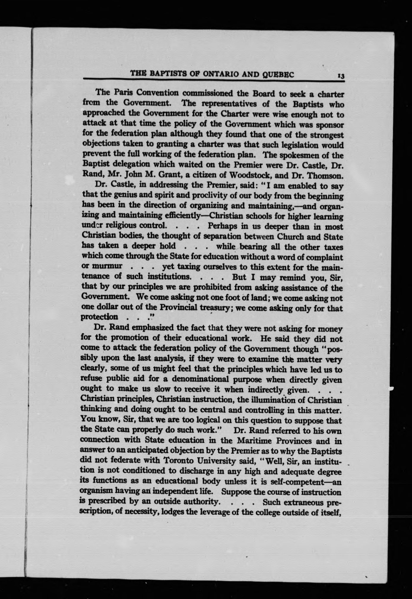 Baptistes -- Éducation -- Ontario -- Histoire.
