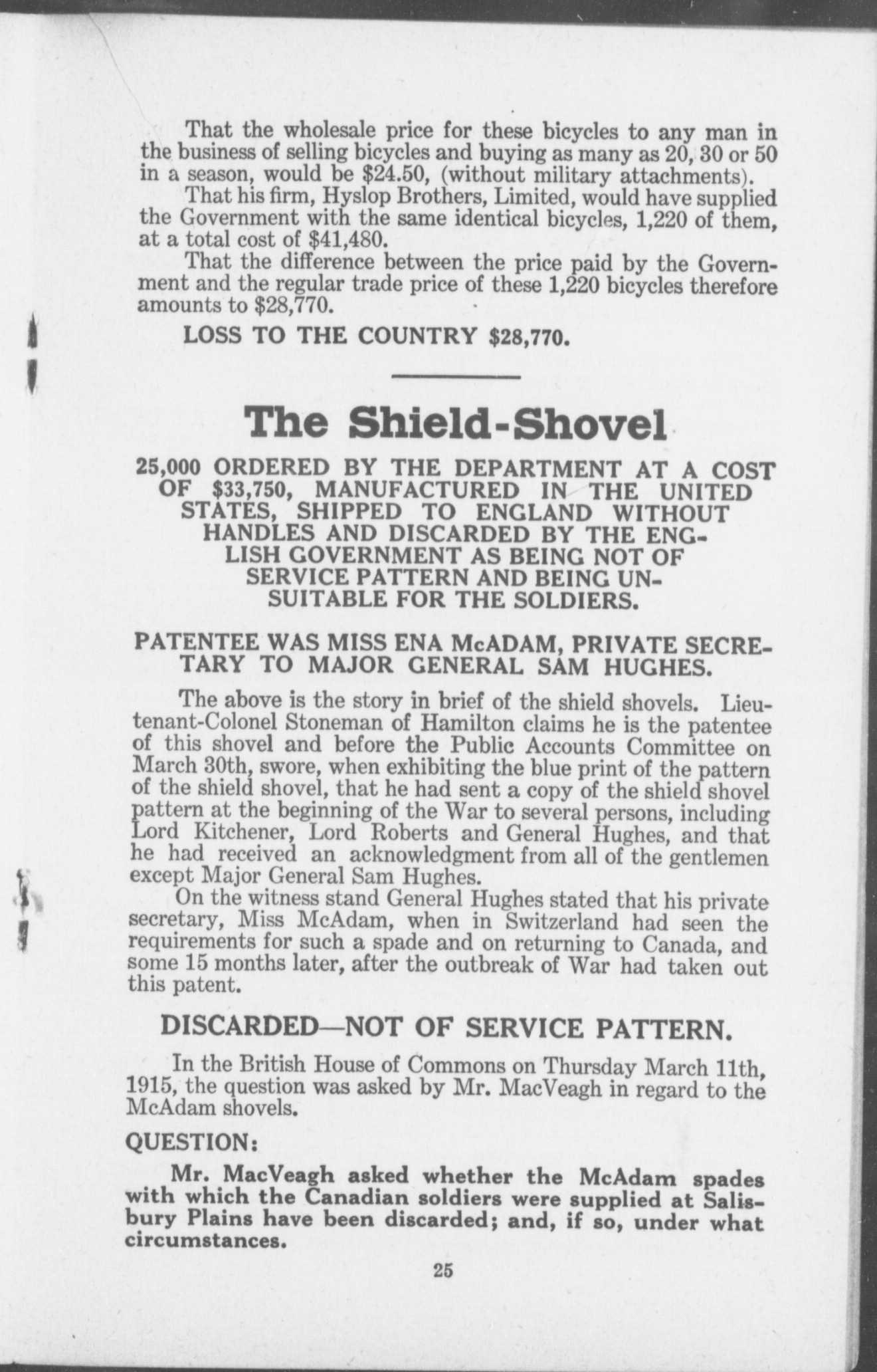 War contract scandals as investigated by the Public Accounts Committee of the House of Commons, Ottawa, 1915 :