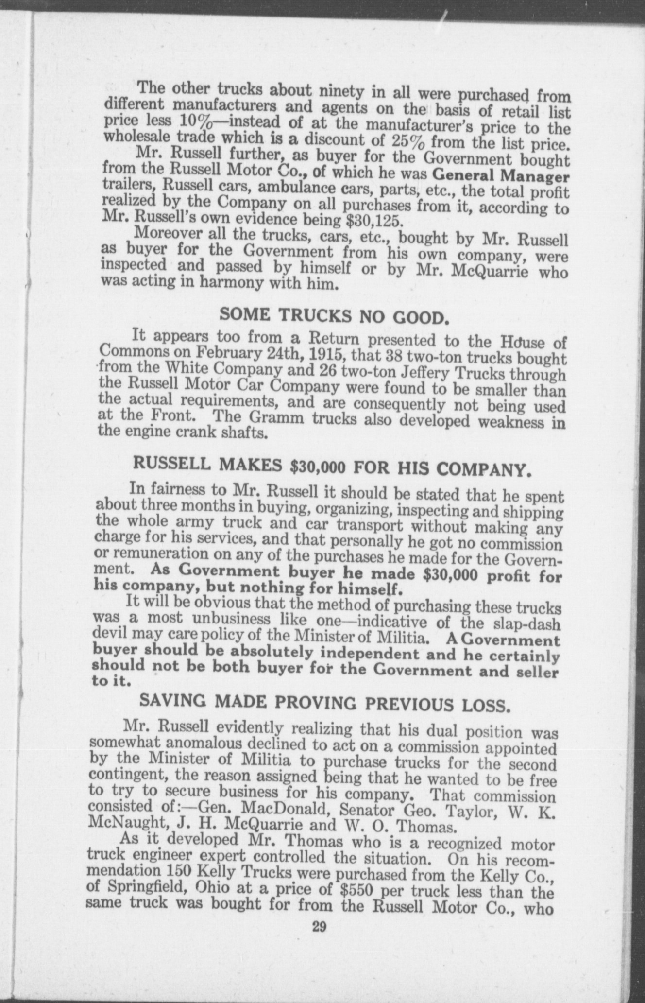 War contract scandals as investigated by the Public Accounts Committee of the House of Commons, Ottawa, 1915 :