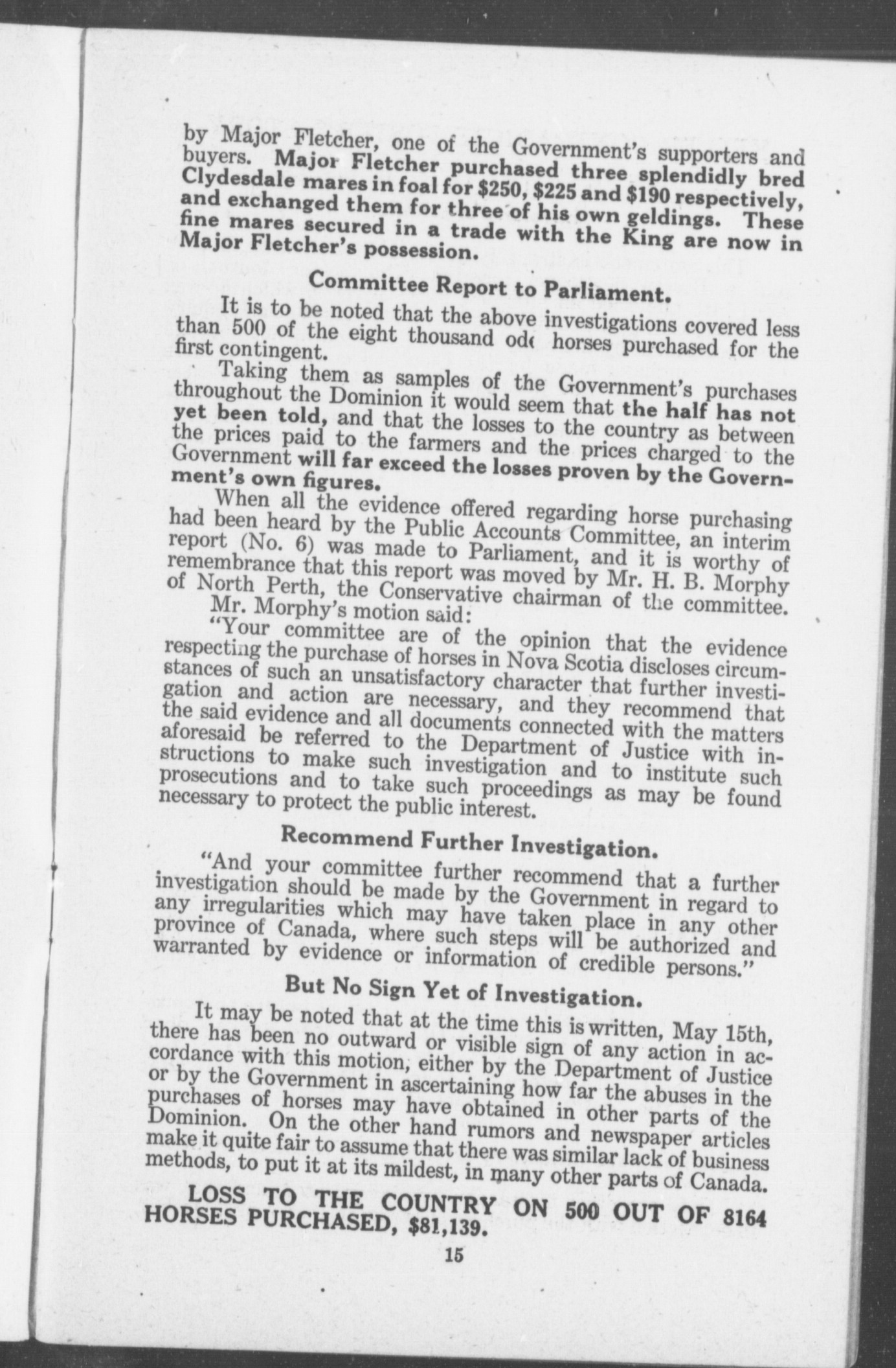 War contract scandals as investigated by the Public Accounts Committee of the House of Commons, Ottawa, 1915 :
