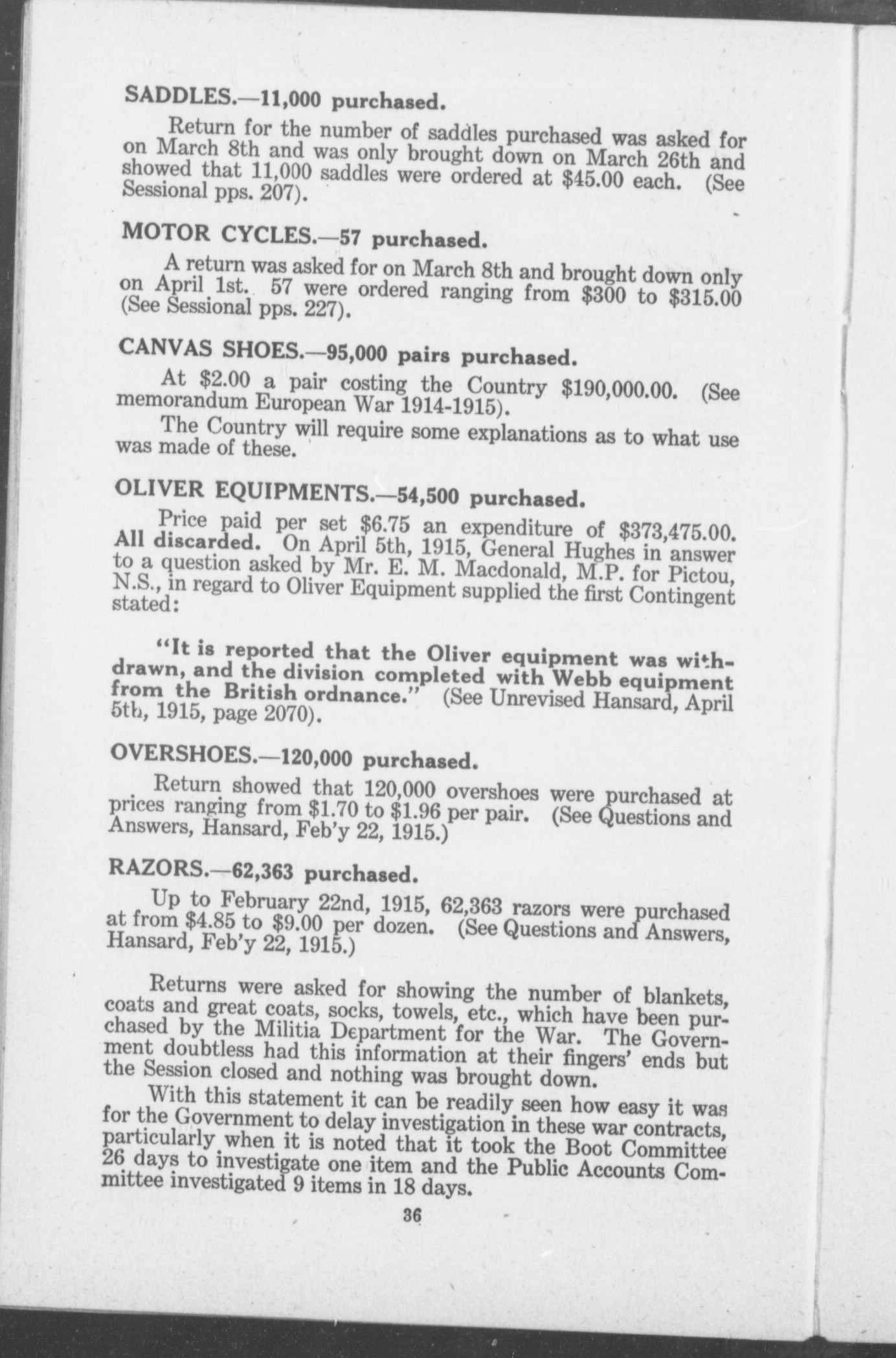 War contract scandals as investigated by the Public Accounts Committee of the House of Commons, Ottawa, 1915 :