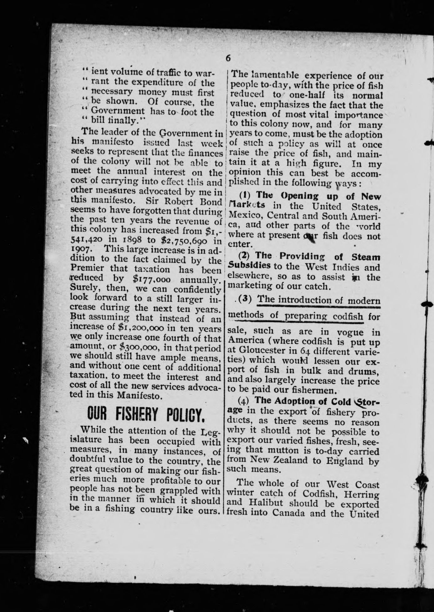 Campaign literature, Canadian, 1908 -- People's Party (Newfoundland)