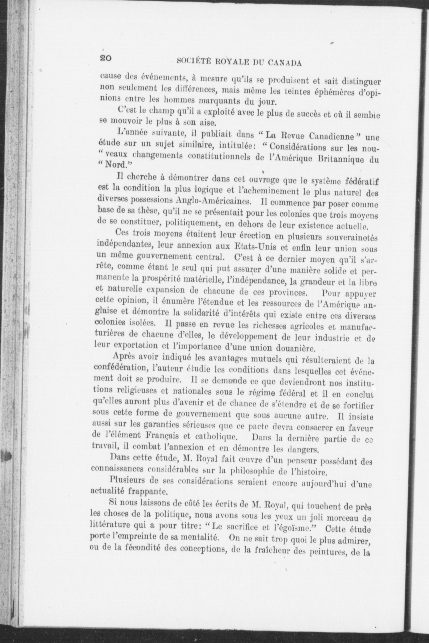 En tête du titre: Des mémoires de la Société Royale du Canada. Deuxième série - 1904-1905. Tome X, Section 1. Littérature française, histoire, archeologie, et cetera.