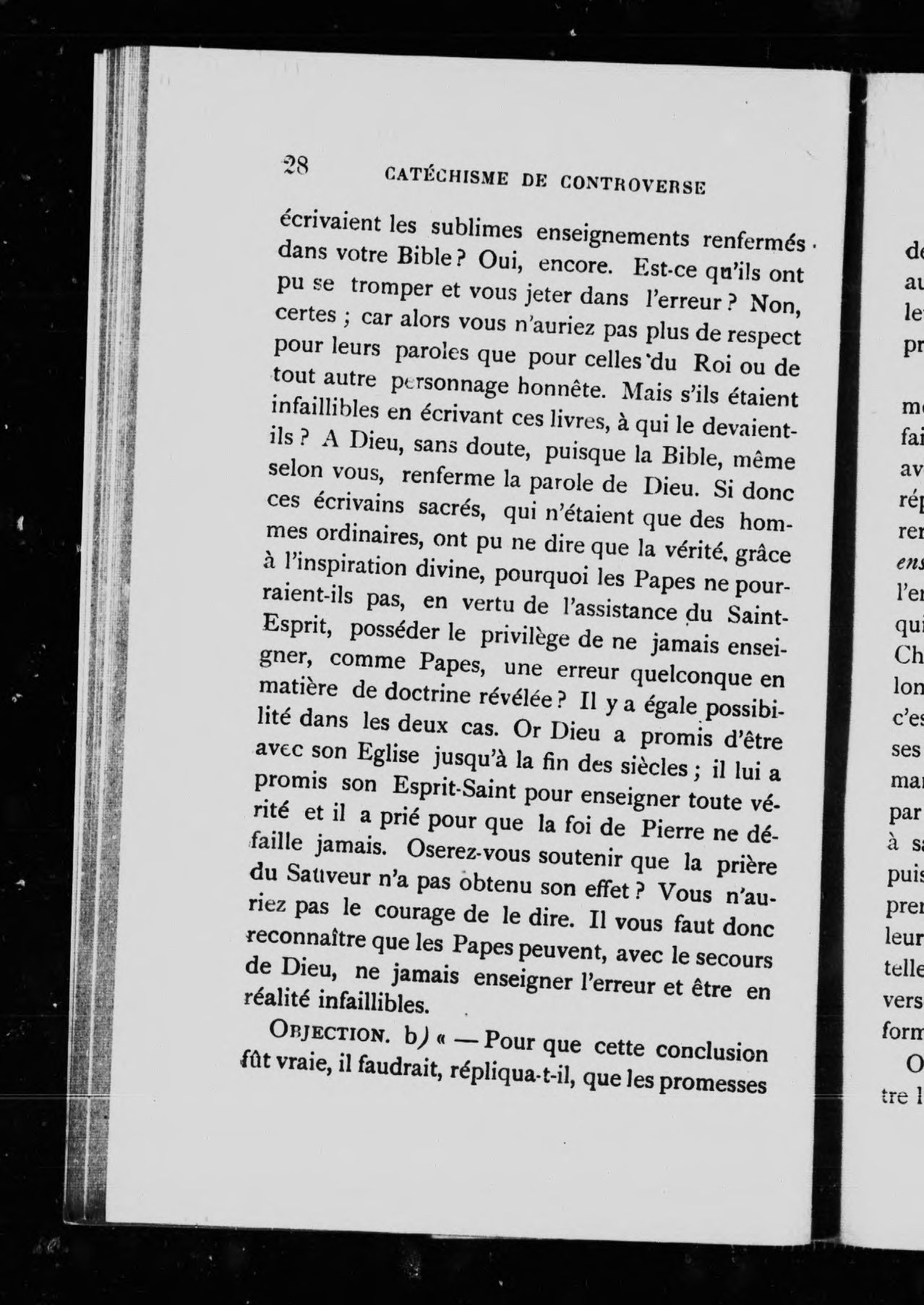"Première Partie. I. Origines du protestantisme. II. L'Église, les Papes et la société civil. III. La Bible et la Tradition. IV. Prétendue intolérance de l'Église."