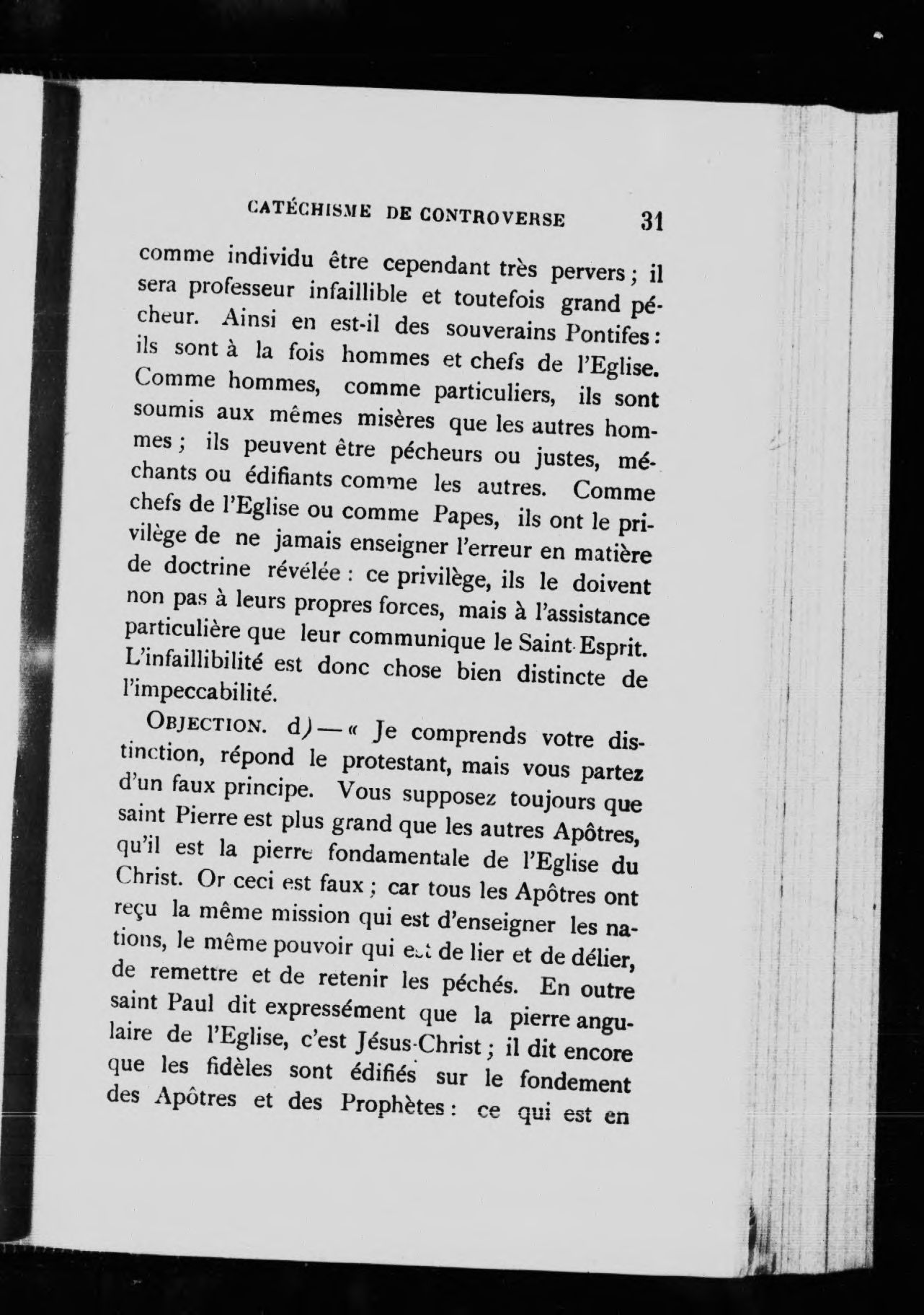 "Première Partie. I. Origines du protestantisme. II. L'Église, les Papes et la société civil. III. La Bible et la Tradition. IV. Prétendue intolérance de l'Église."