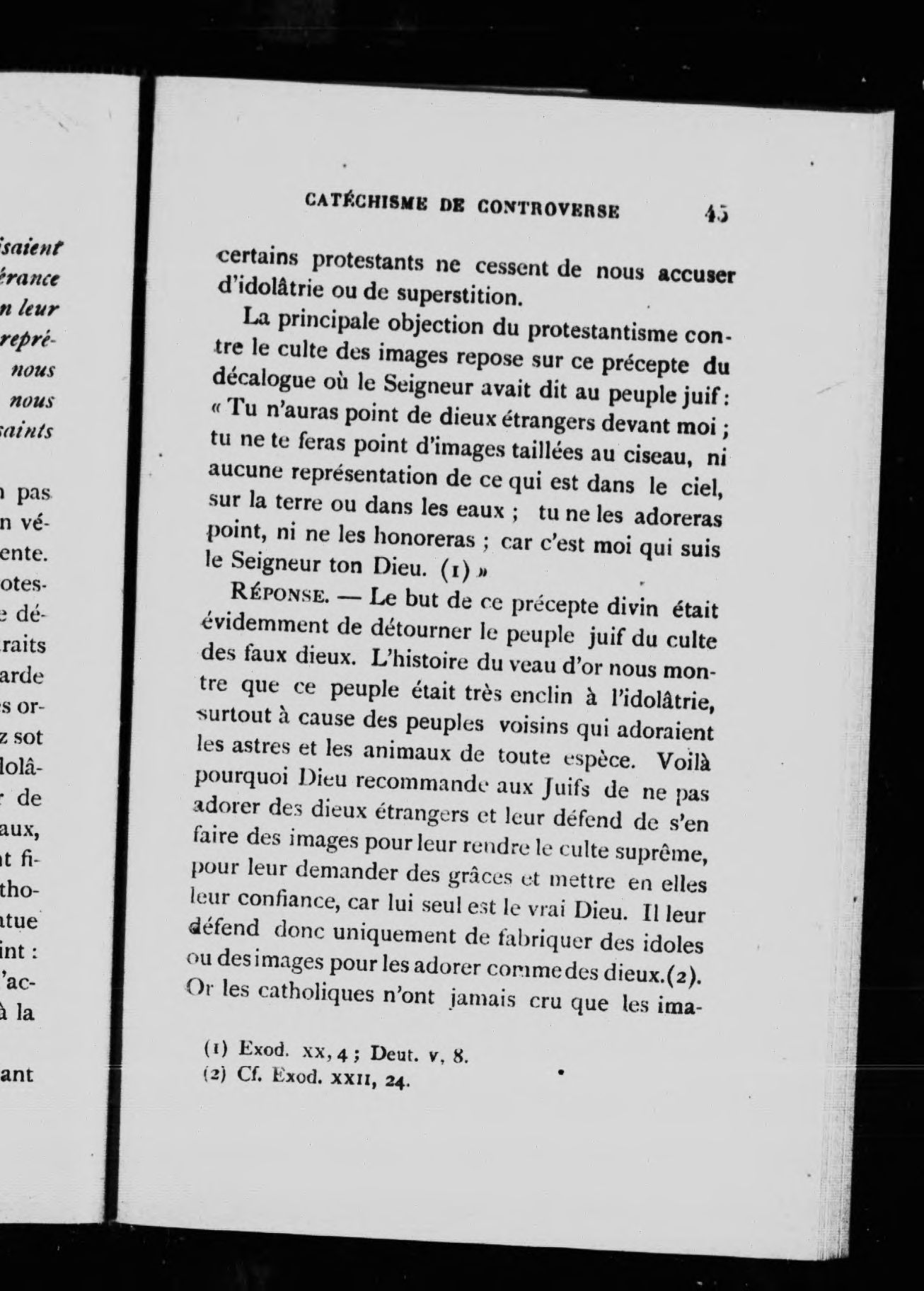 "Troisième Partie. I. Le culte des saints et des reliques. II. Le culte de la Très Sainte Vierge : Immaculée Conception, Virginité perpétuelle ; Maternité divine de Marie. III. Le culte des images - Les pélerinages. IV. Les particularités du culte extérieur dans l'Église catholique: l'encens, les lampes, l'eau bénite, les cérémonies en général. V. Le Purgatoire. VI. Les Indulgences."