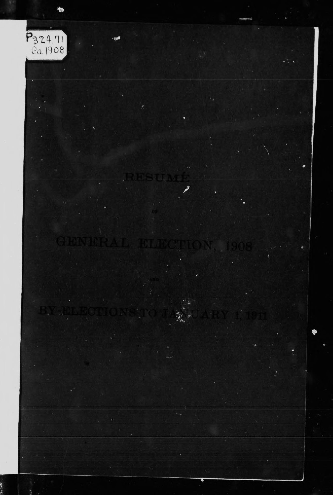 Resumé of general election, 1908 and by-elections to January 1, 1911.