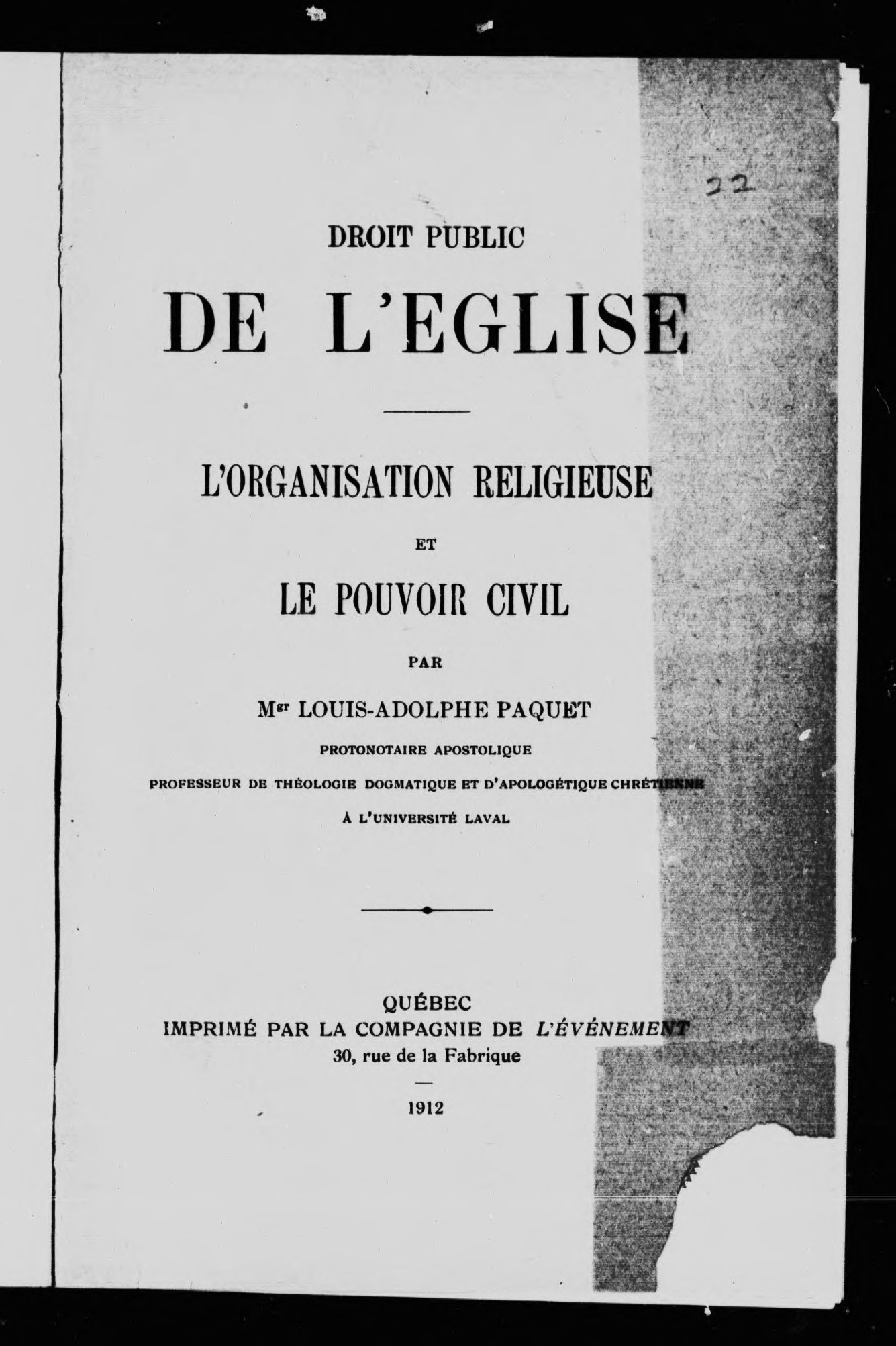 [Québec? : publisher not identified], 1912.; 342 images, 328 avec recherche en texte intégral