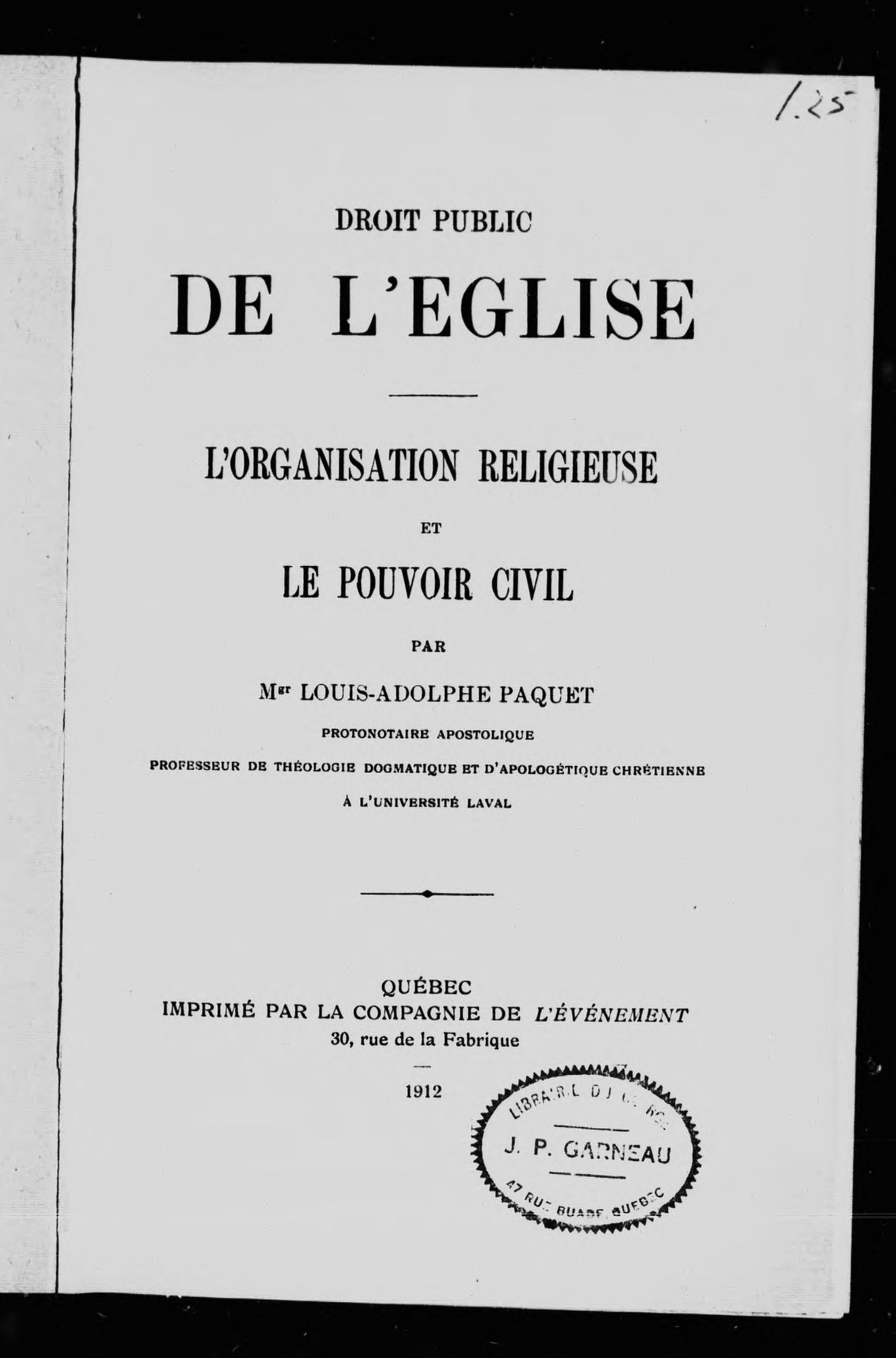 [Québec? : publisher not identified], 1912.; 342 images, 328 avec recherche en texte intégral