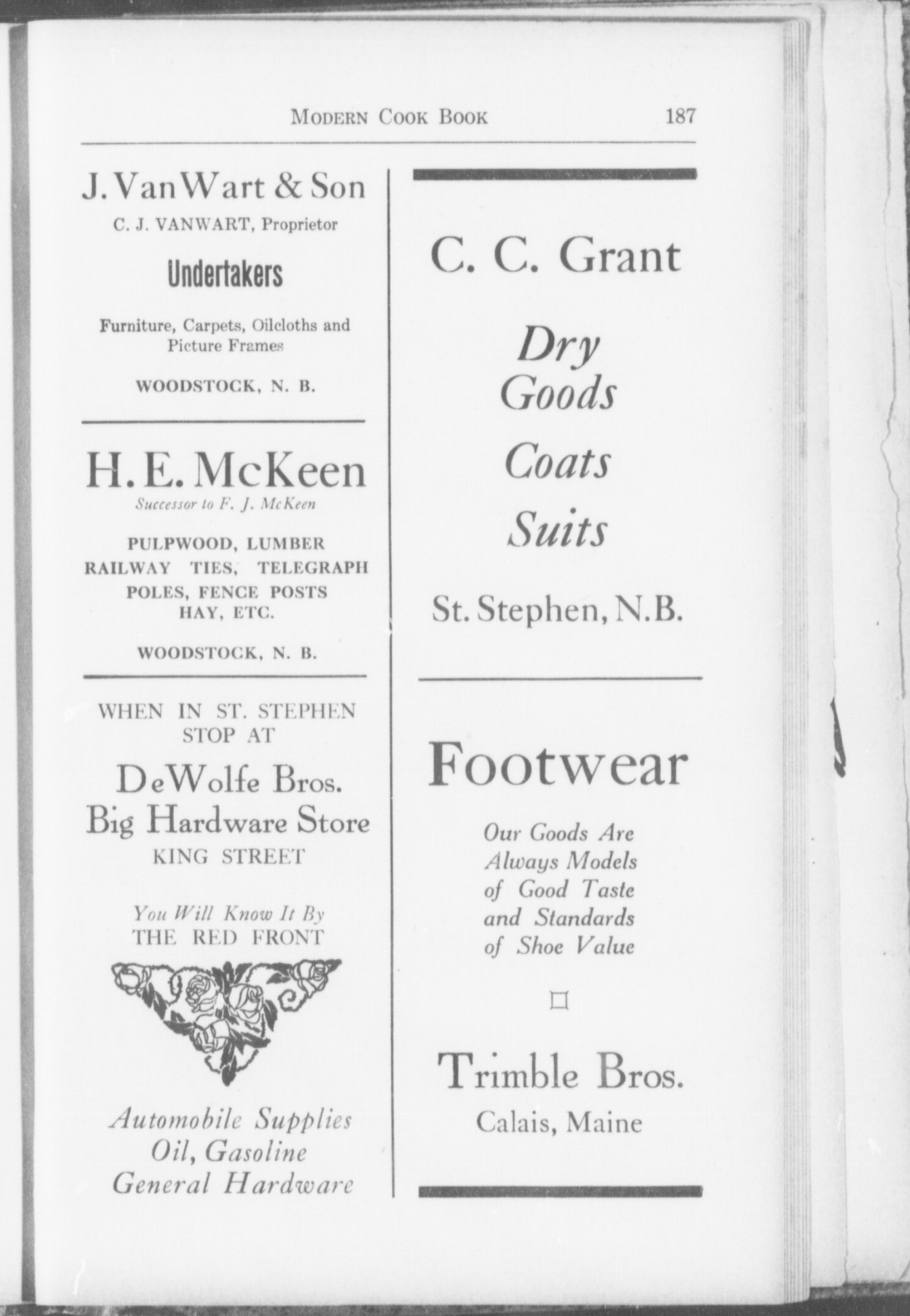 - The Modern Cook Book for New Brunswick : containing Carefully Selected Recipes Recommended For Practical Use in Every Houshold [sic]