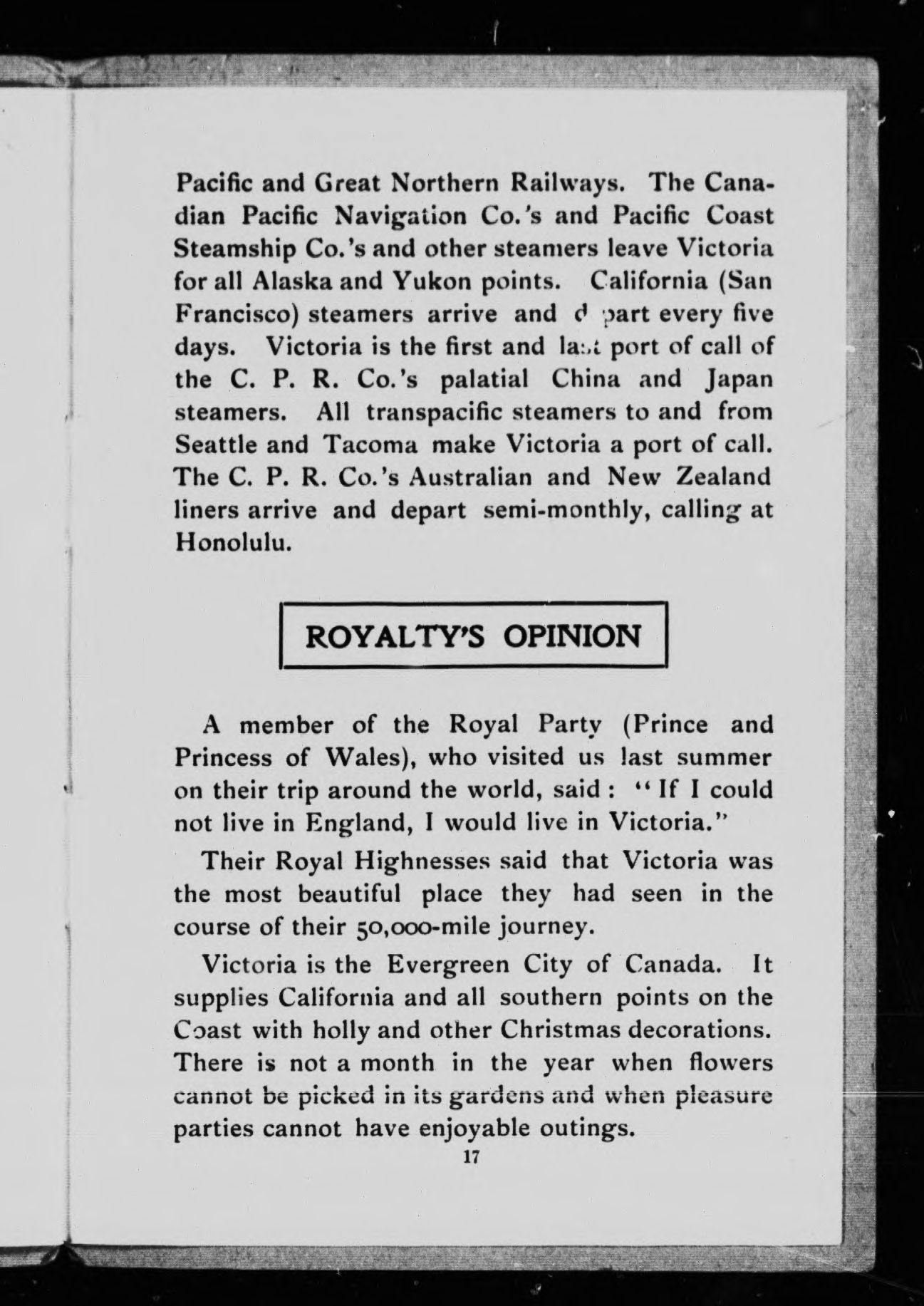"With the compliments of the Tourist Association of Victoria, B.C."