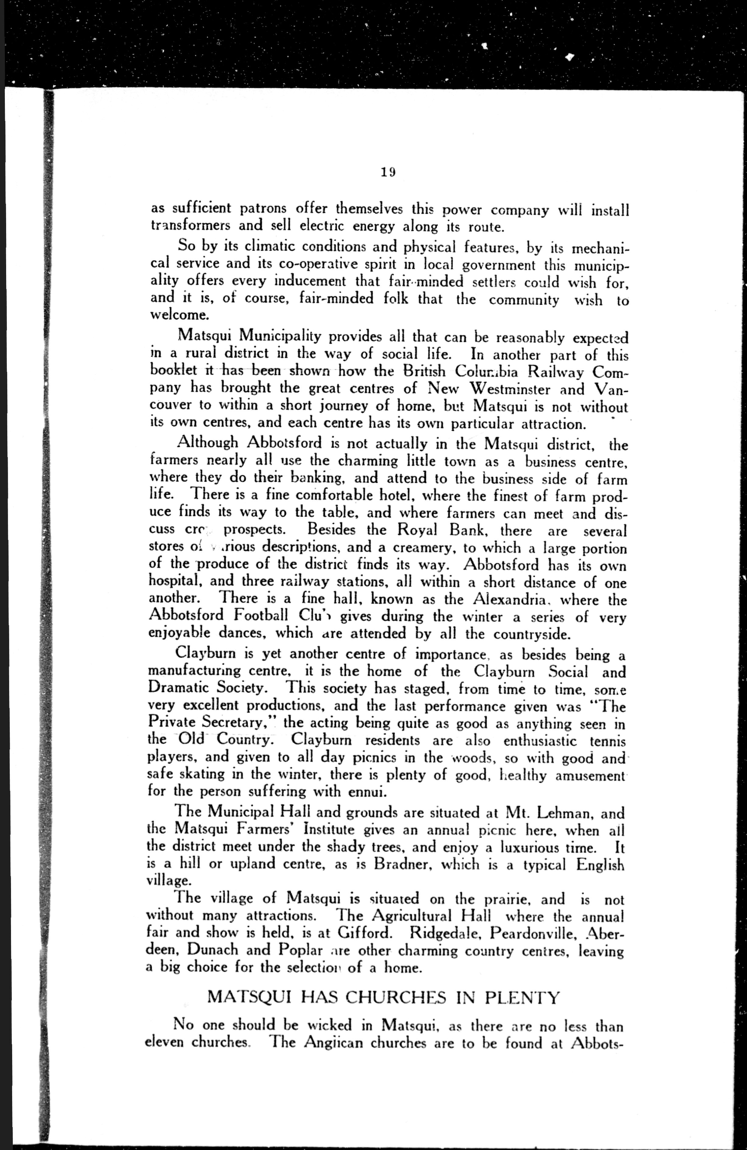 Cover title: Matsqui, British Columbia, an agricultural district in the Lower Fraser Valley of manifold resources and possibilities ...Title from title screen.Includes advertising matter.