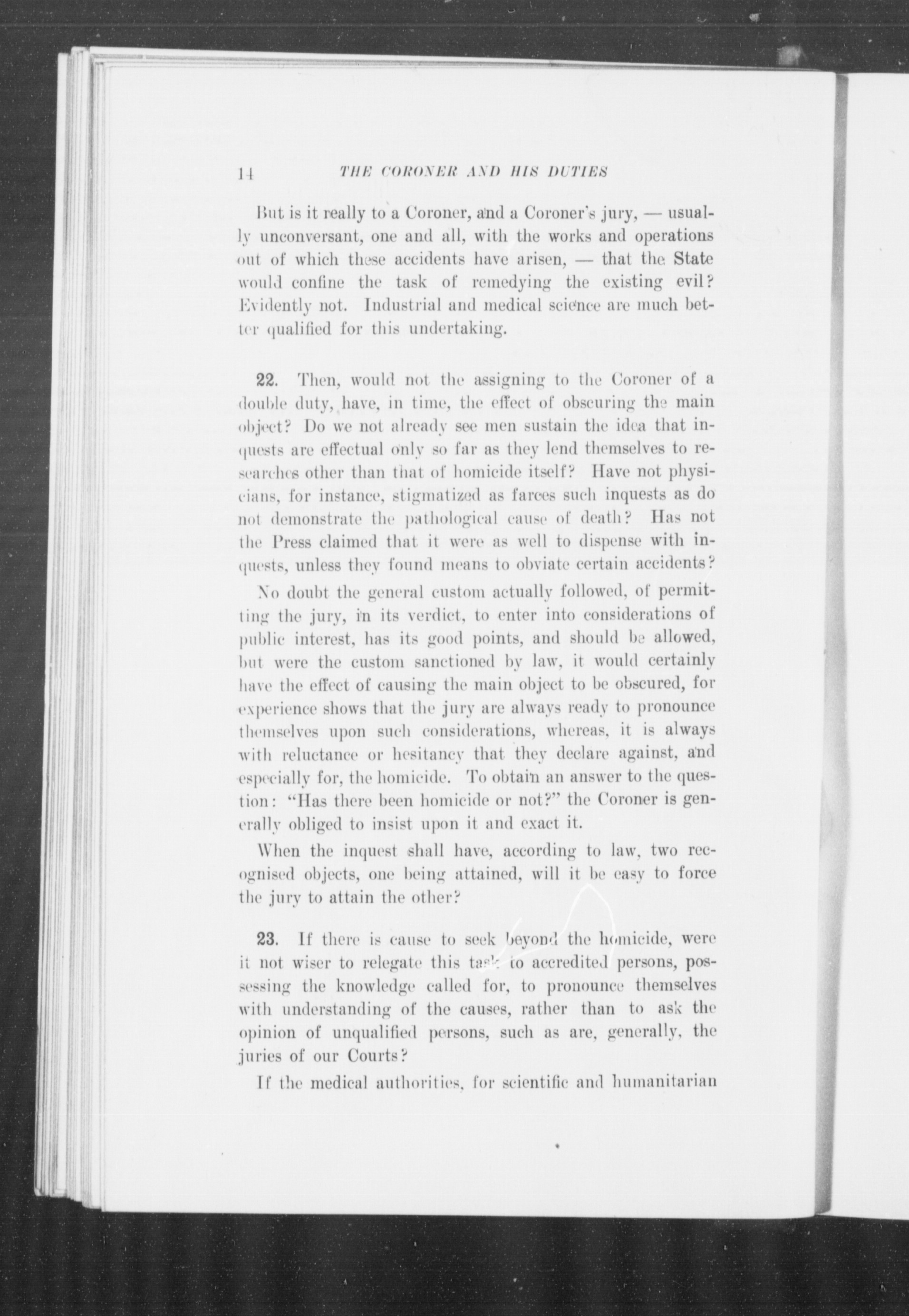 Half title: The Coroner and his duties at inquests without and with a jury.