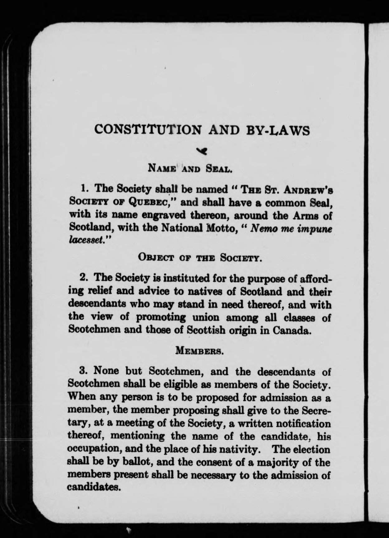 St. Andrew's Society of Quebec. - Titre