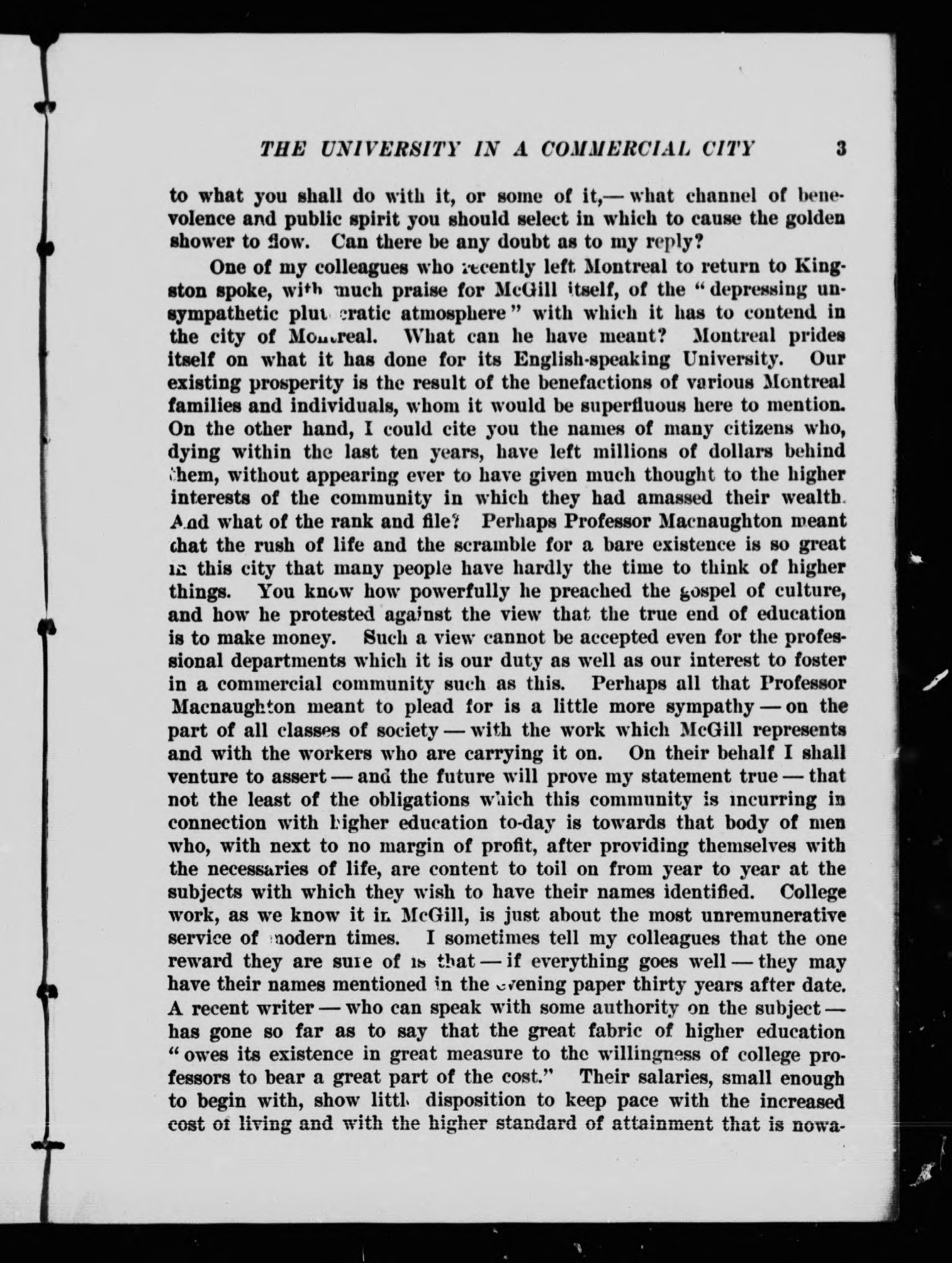 - The place of the university in a commercial city : an address delivered before the Canada Club, Montreal, 24th March, 1905