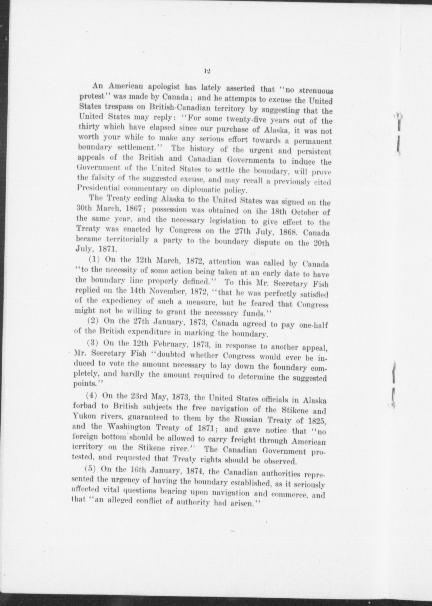 '"A strip of land ... was assigned to Russia ... the same strip of land which the United States acquired ... the same strip of land which gave to British America .. a free access to the ocean"-Mr. Secretary Blaine to the British Ambassador, 1890.'