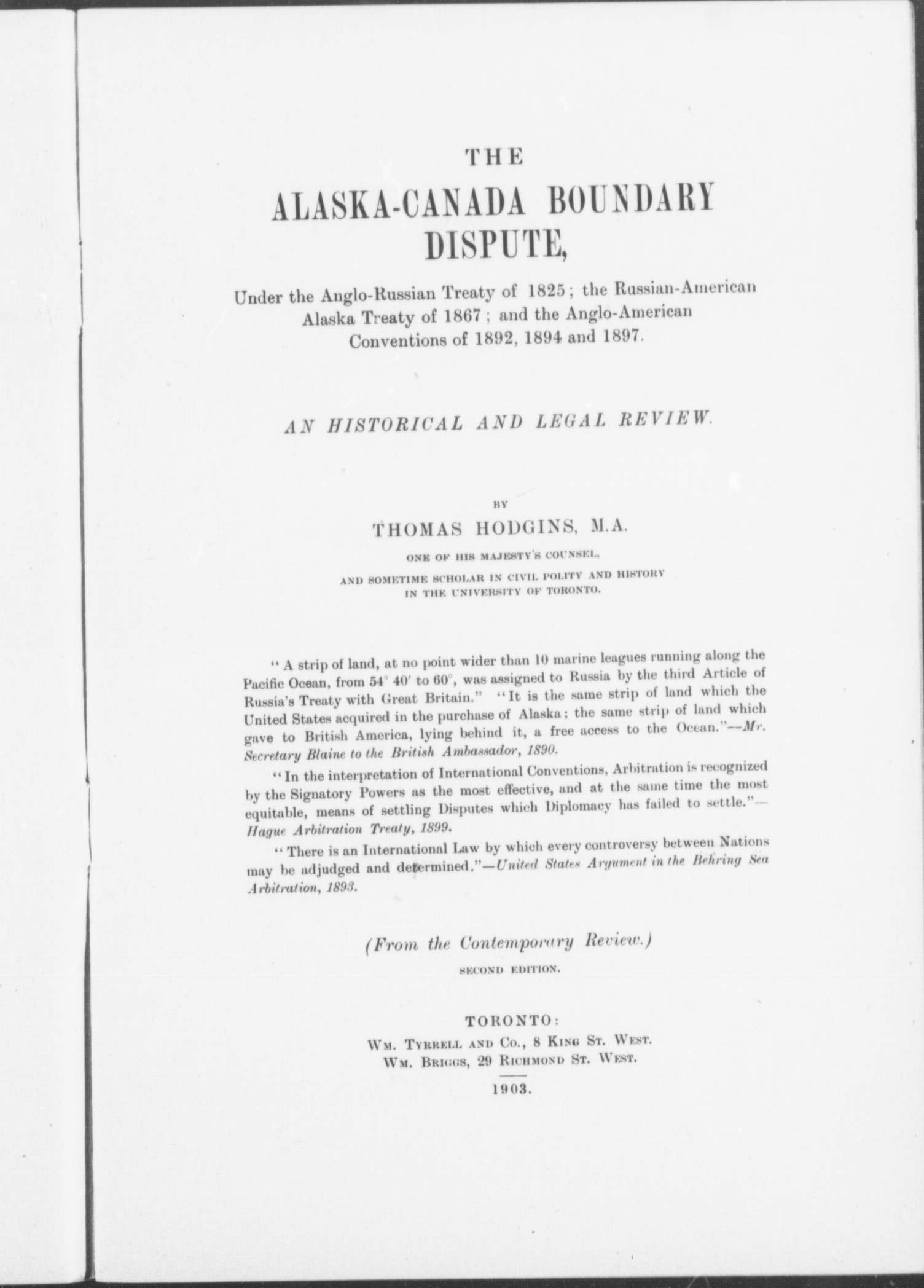 - The Alaska-Canada boundary dispute, under the Anglo-Russian treaty of 1825, the Russian-American Alaska treaty of 1867, and the Anglo- American conventions of 1892, 1894 and 1897 : an historical and legal review